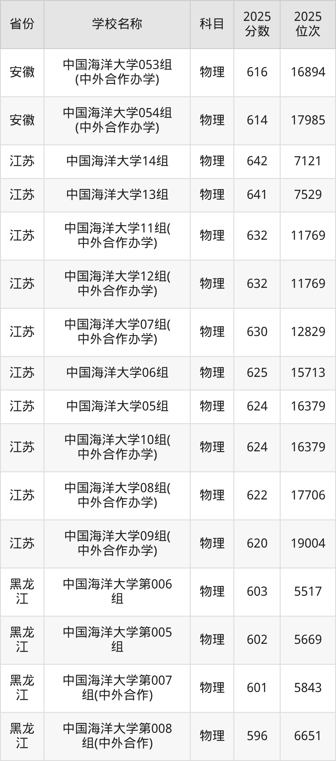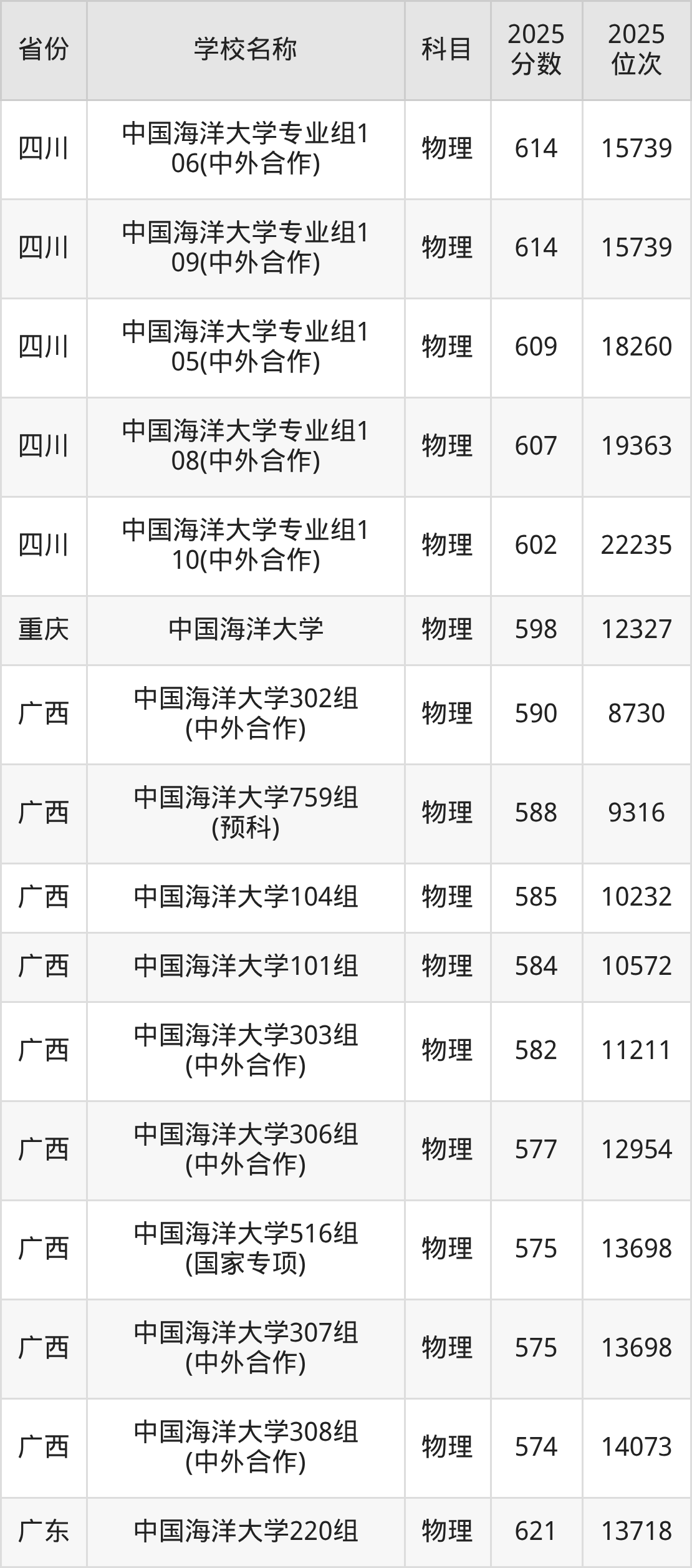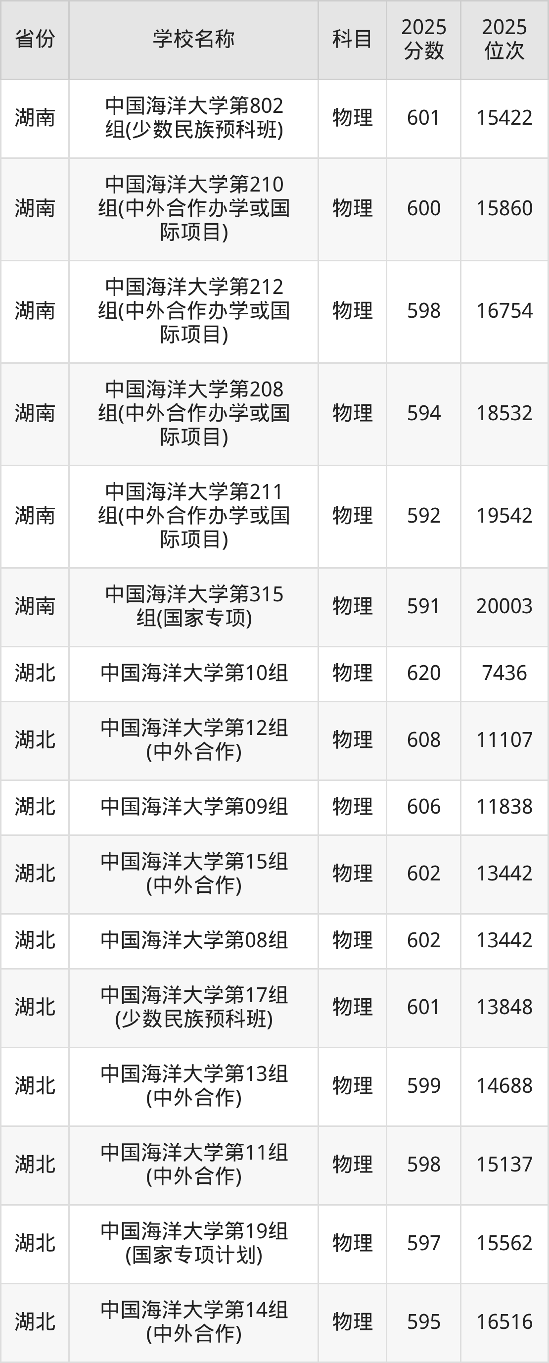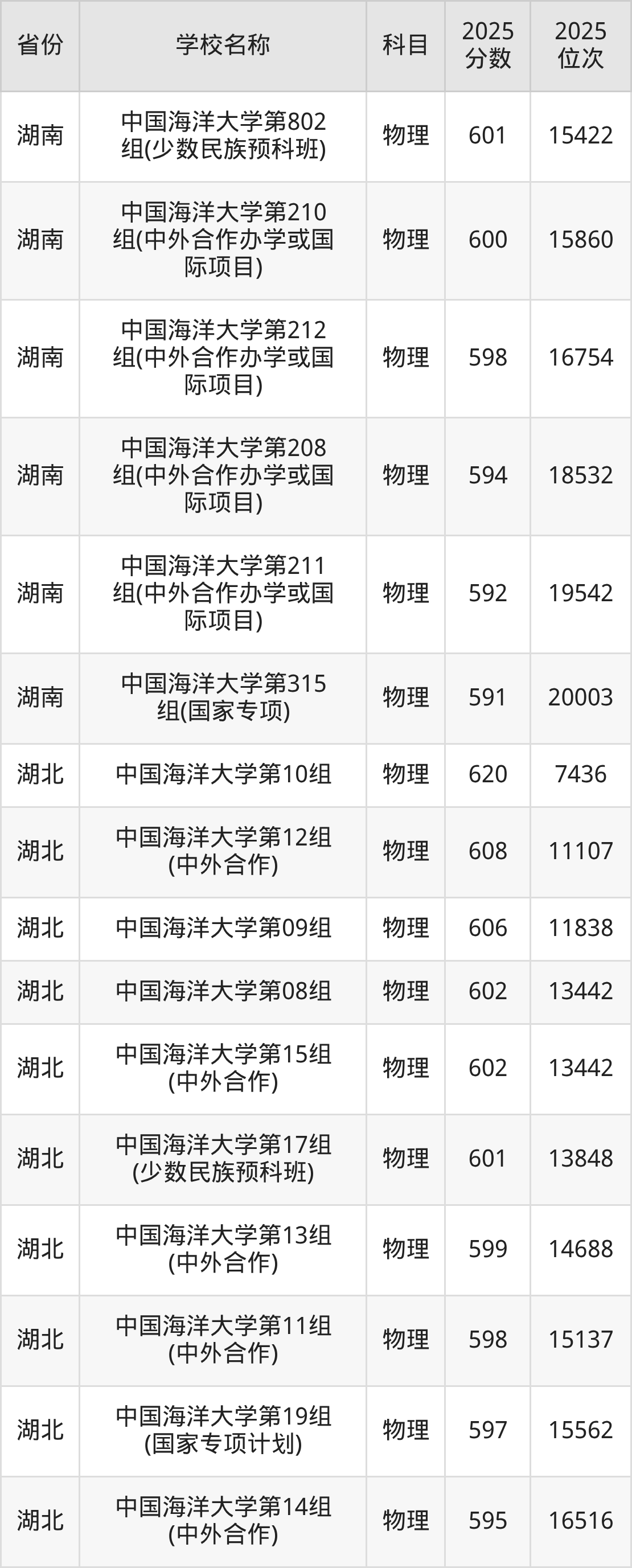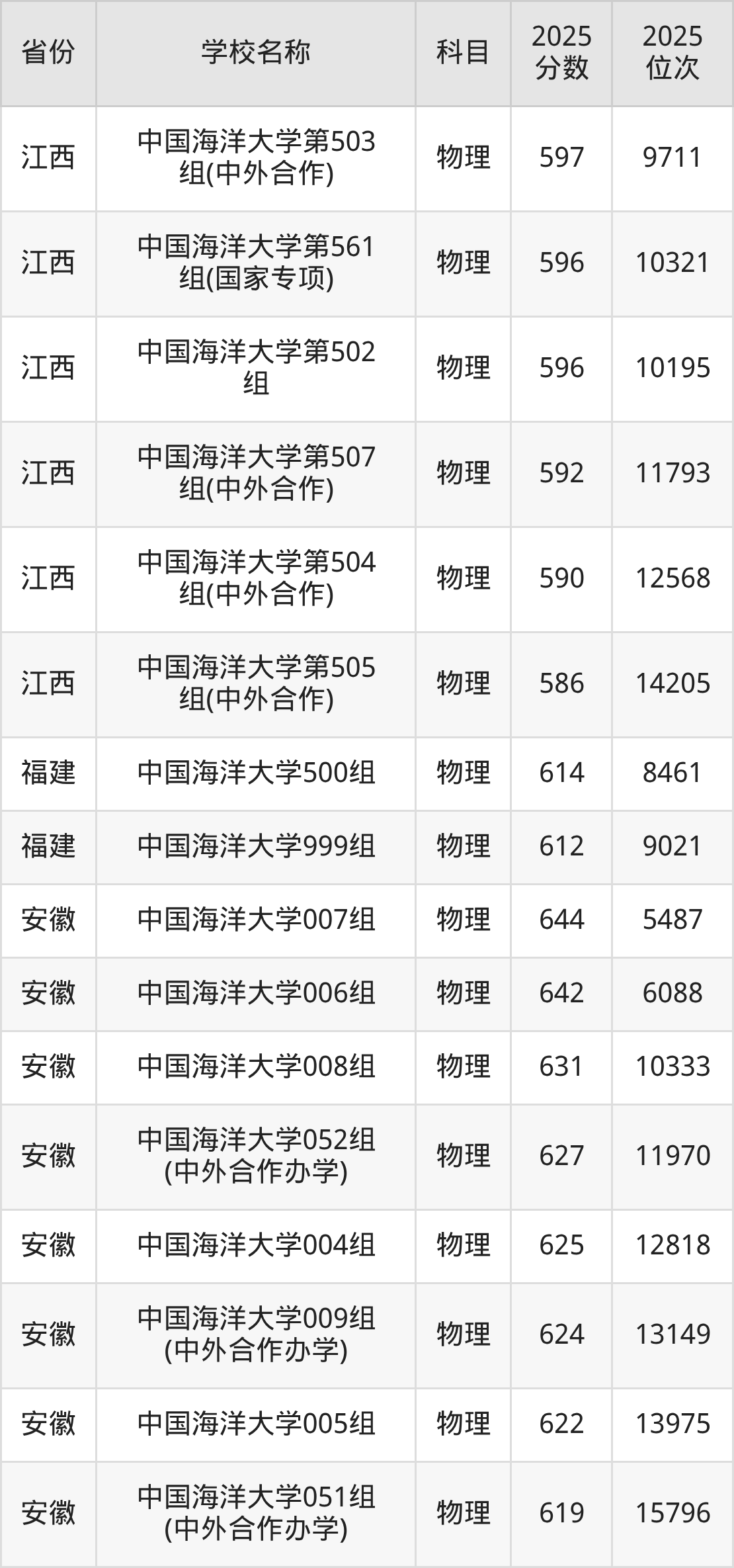 一、2025中国海洋大学录取分数线