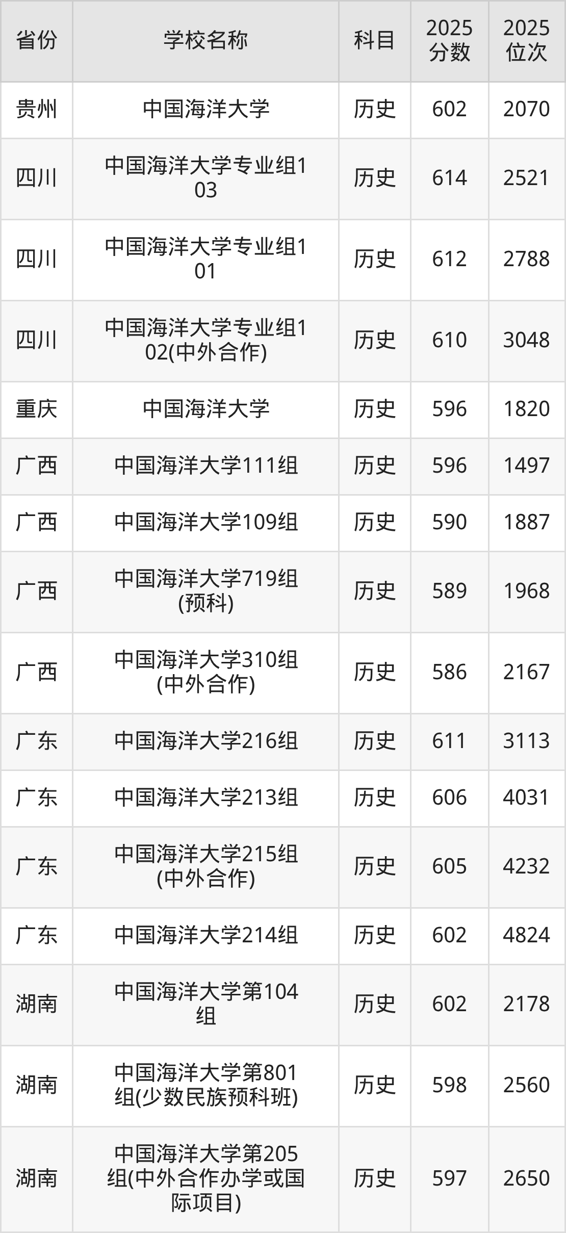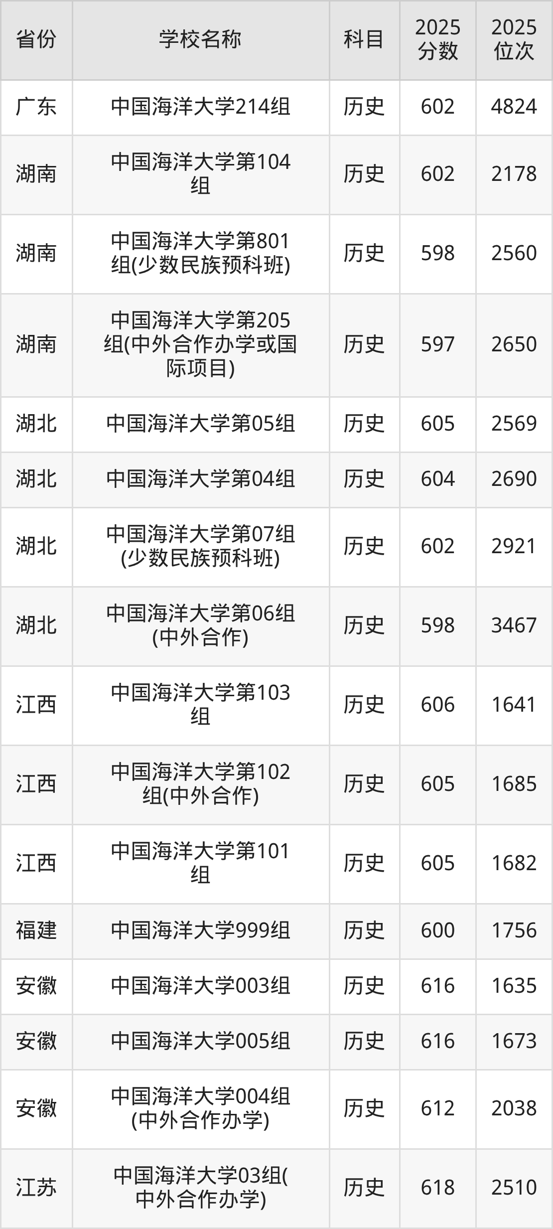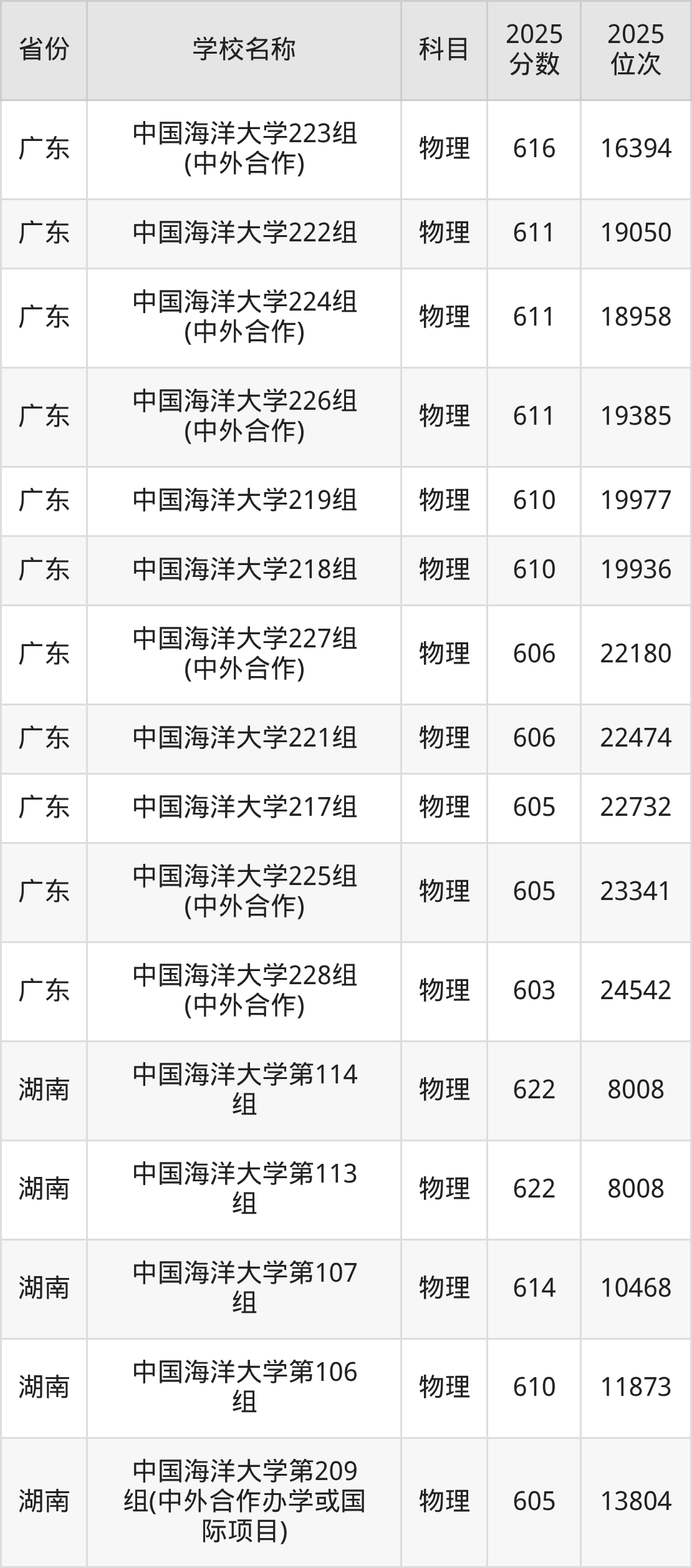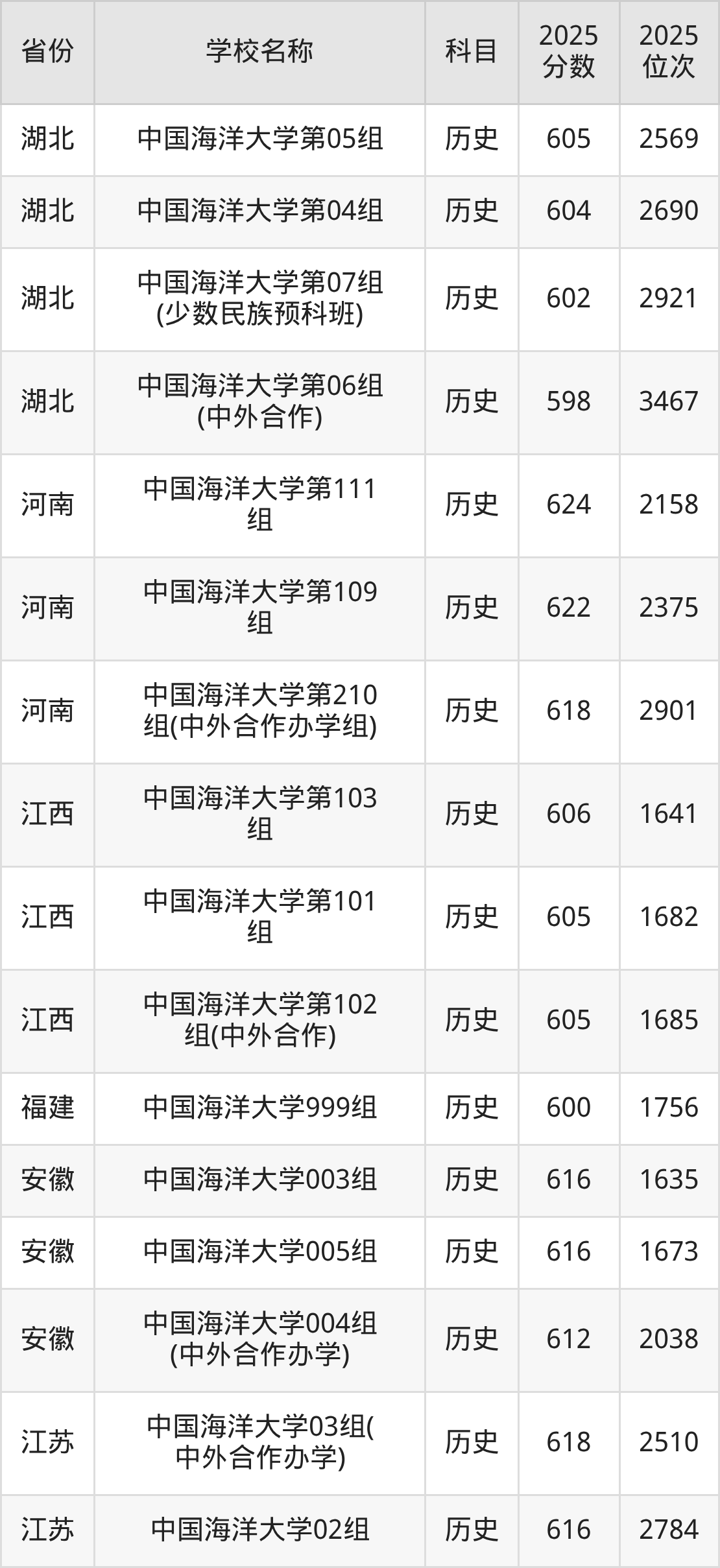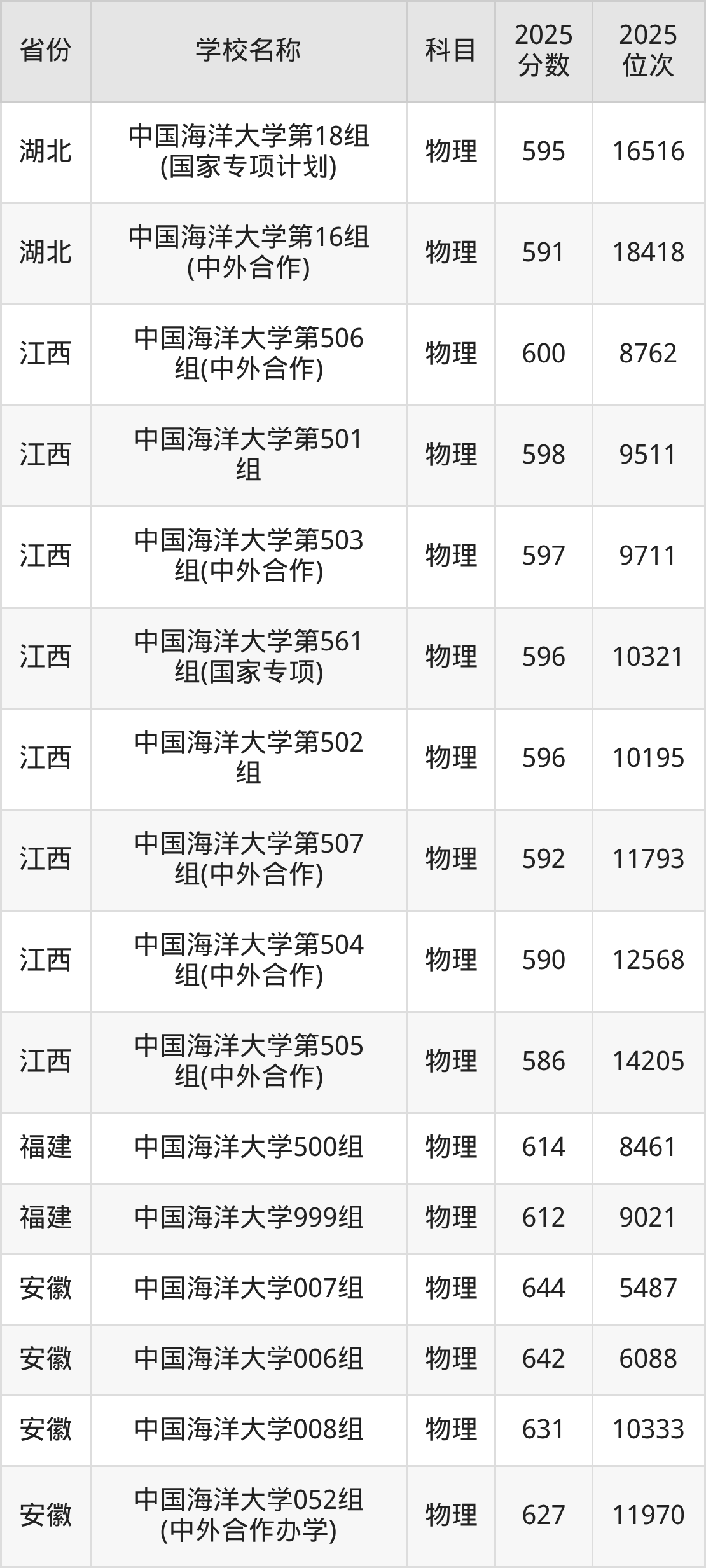 一、2025中国海洋大学录取分数线
