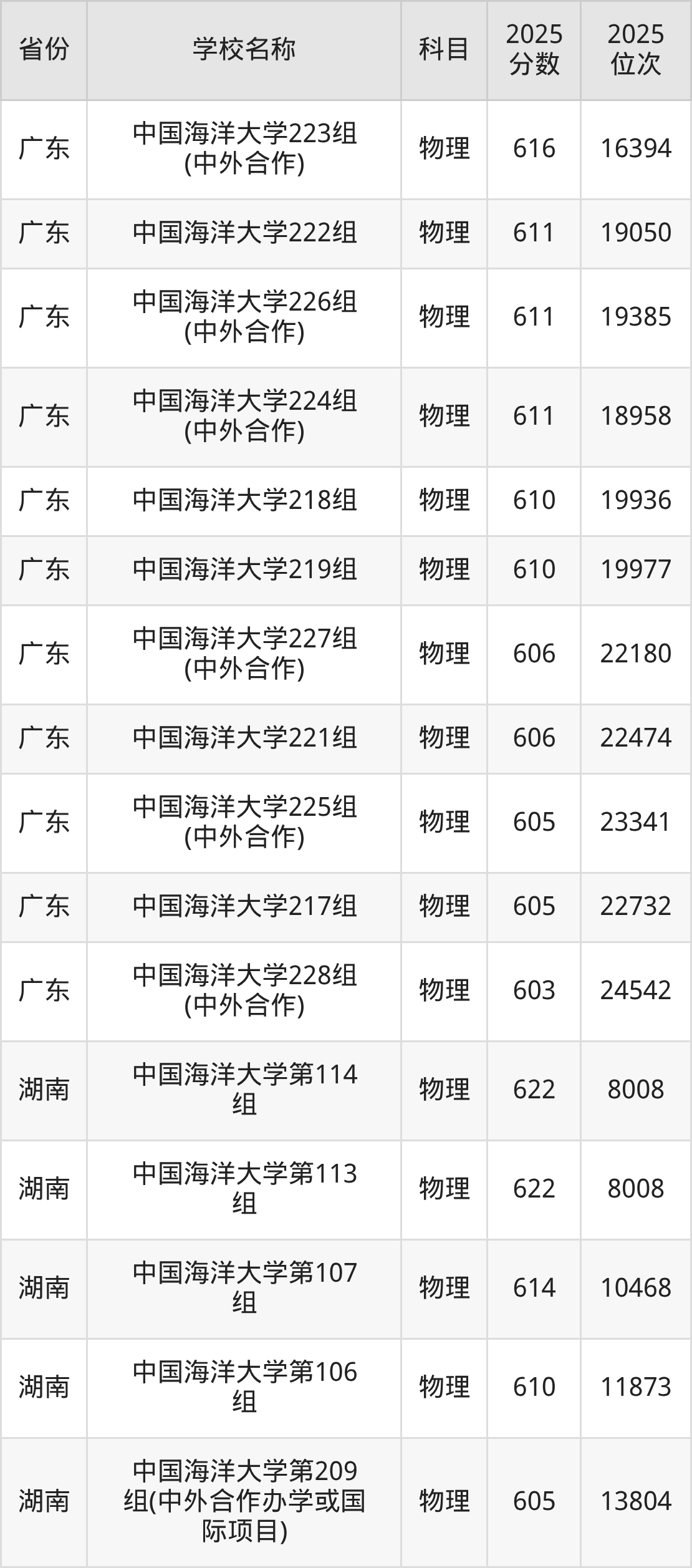 53、物理学专业:2025年最低582分、最低位次是39839