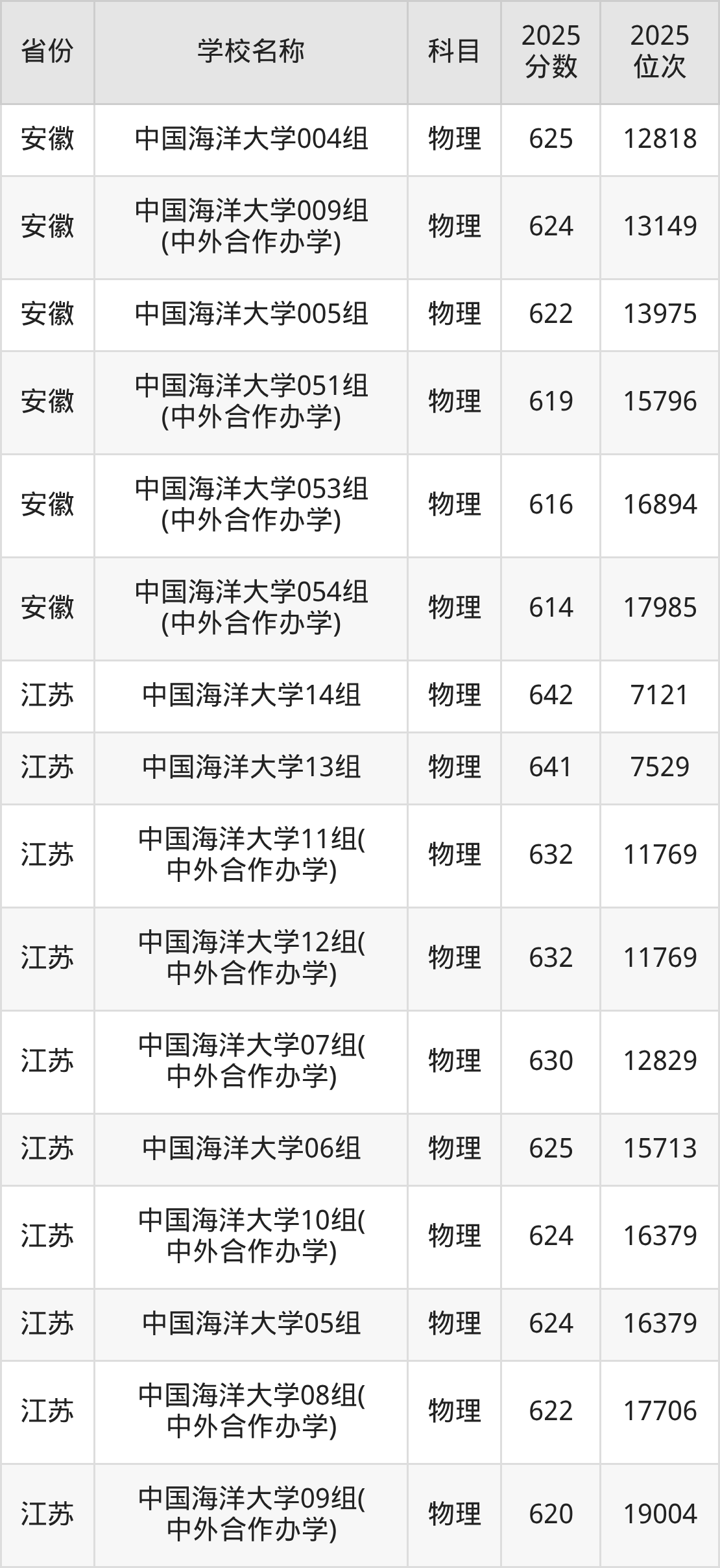 12、声学专业:2025年最低615分、最低位次是15486