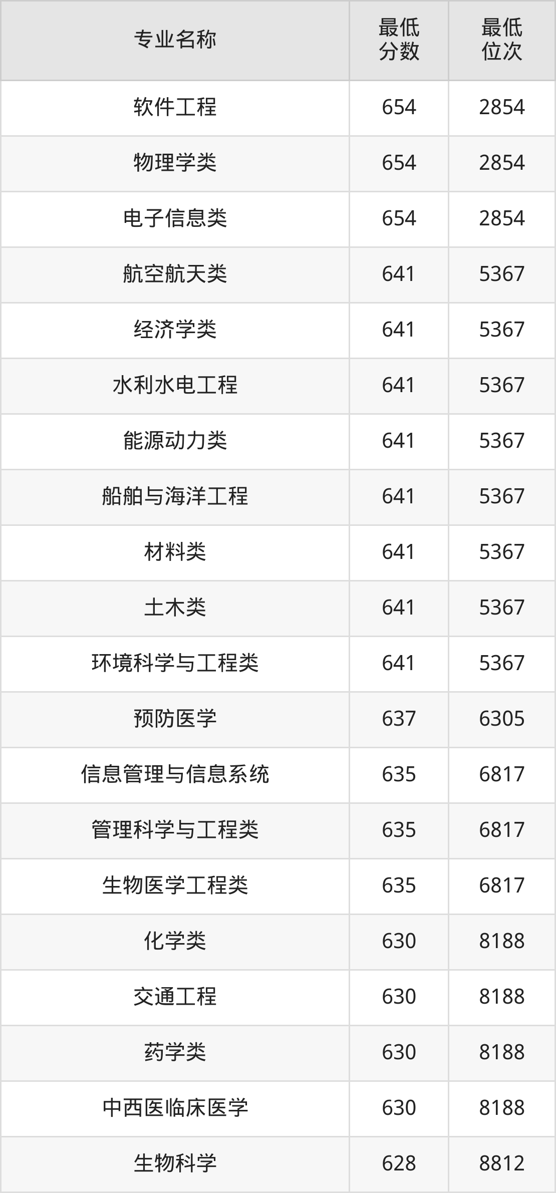 | 山西 | 理科本科一批 A | —— | 638/623/608 |