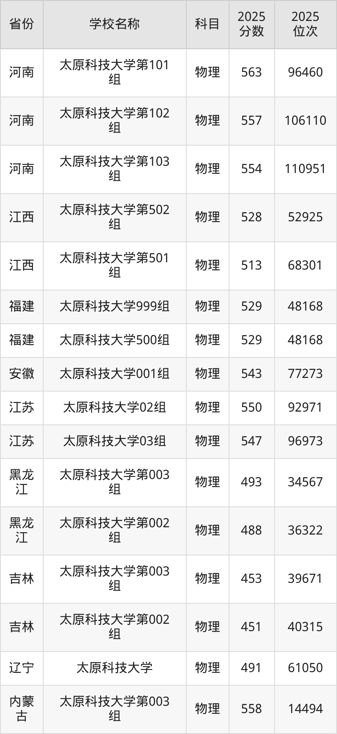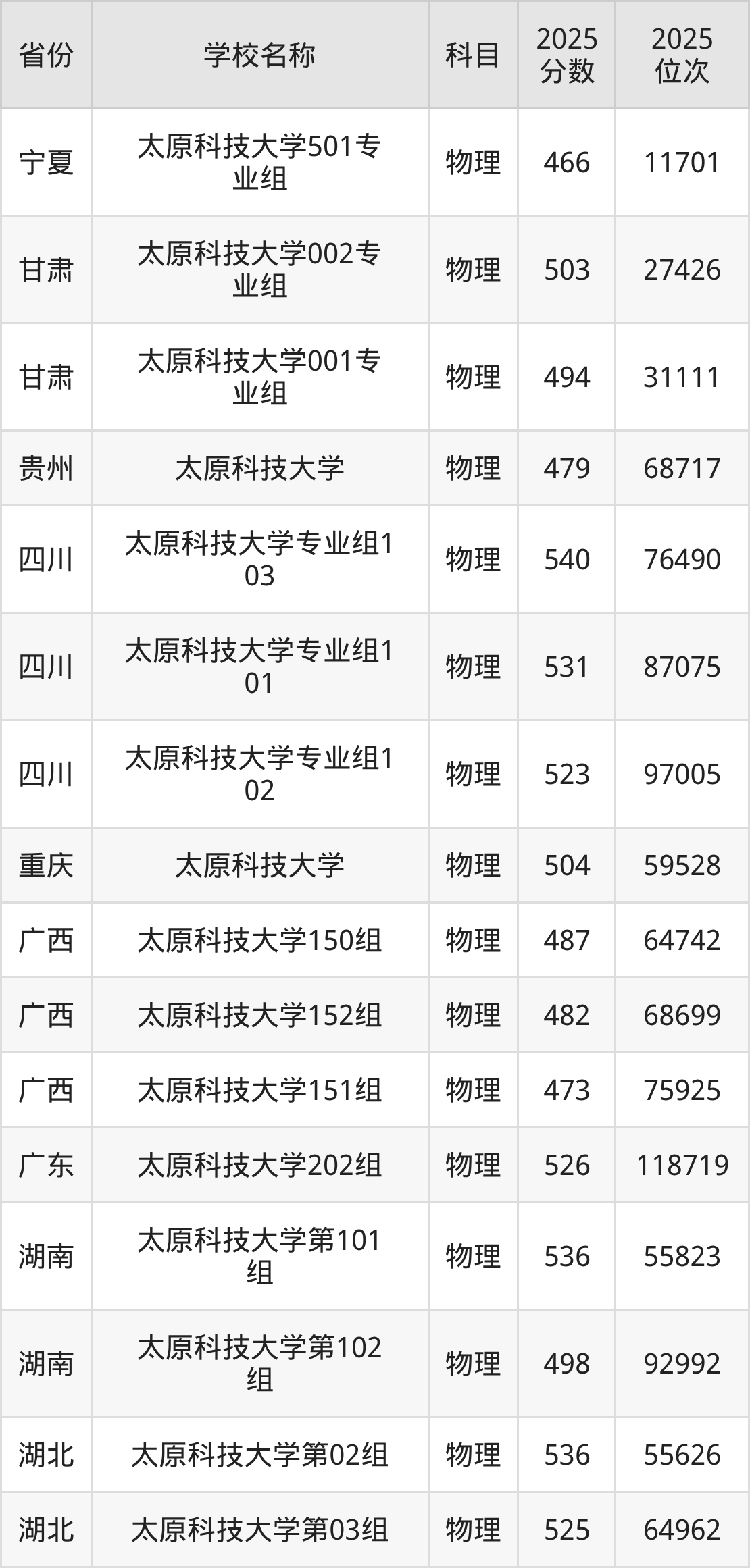 太原科技大学2025年有10个专业组面向山西省内首选了物理科目的考生招生: