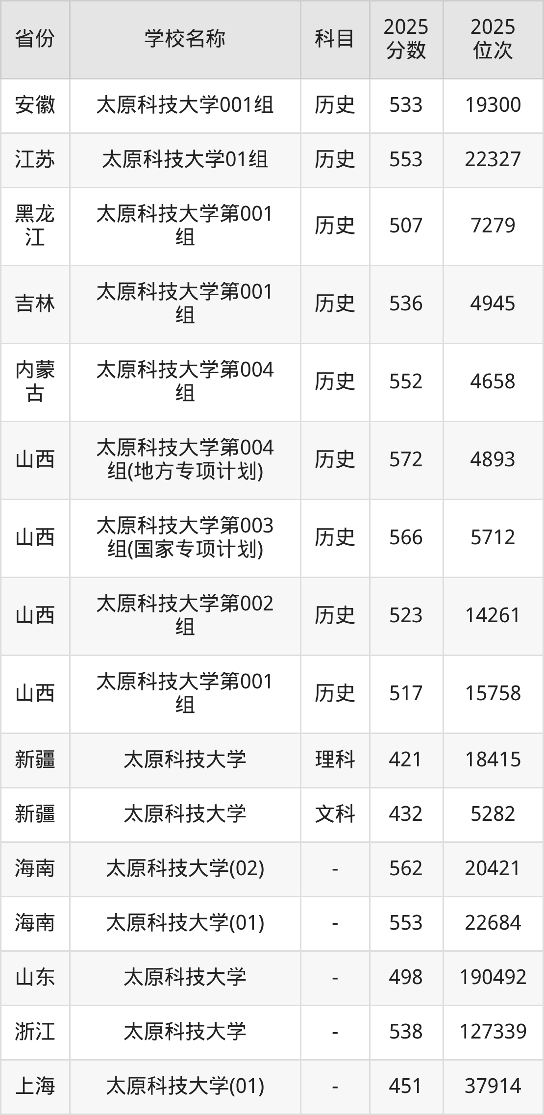 一、2025太原科技大学录取分数线