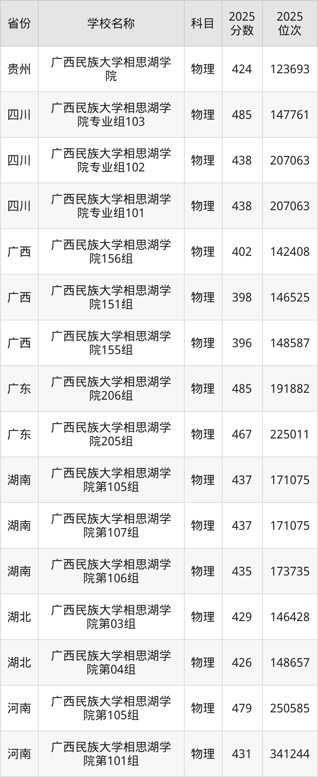 广西民族大学相思湖学院2025年有3个专业组面向广西壮族自治区内首选了物理科目的考生招生:
