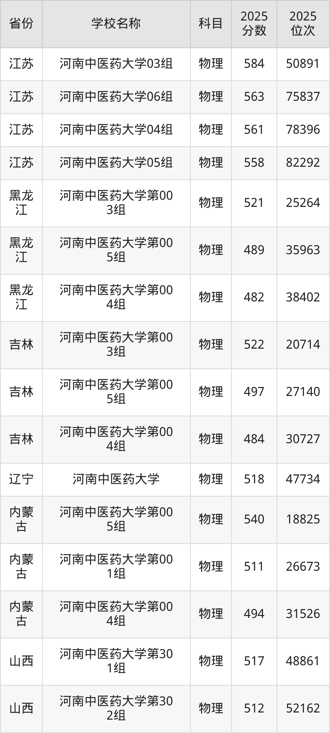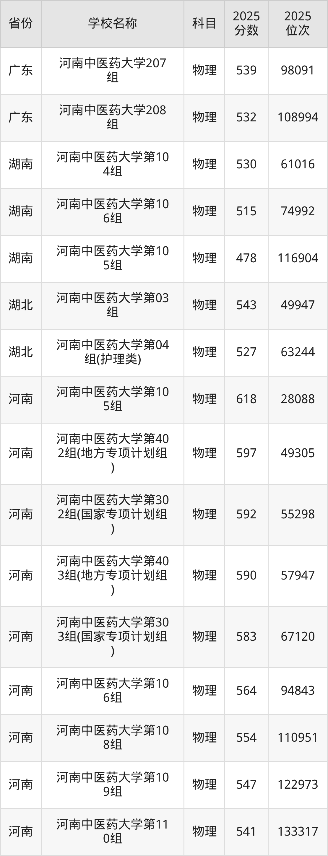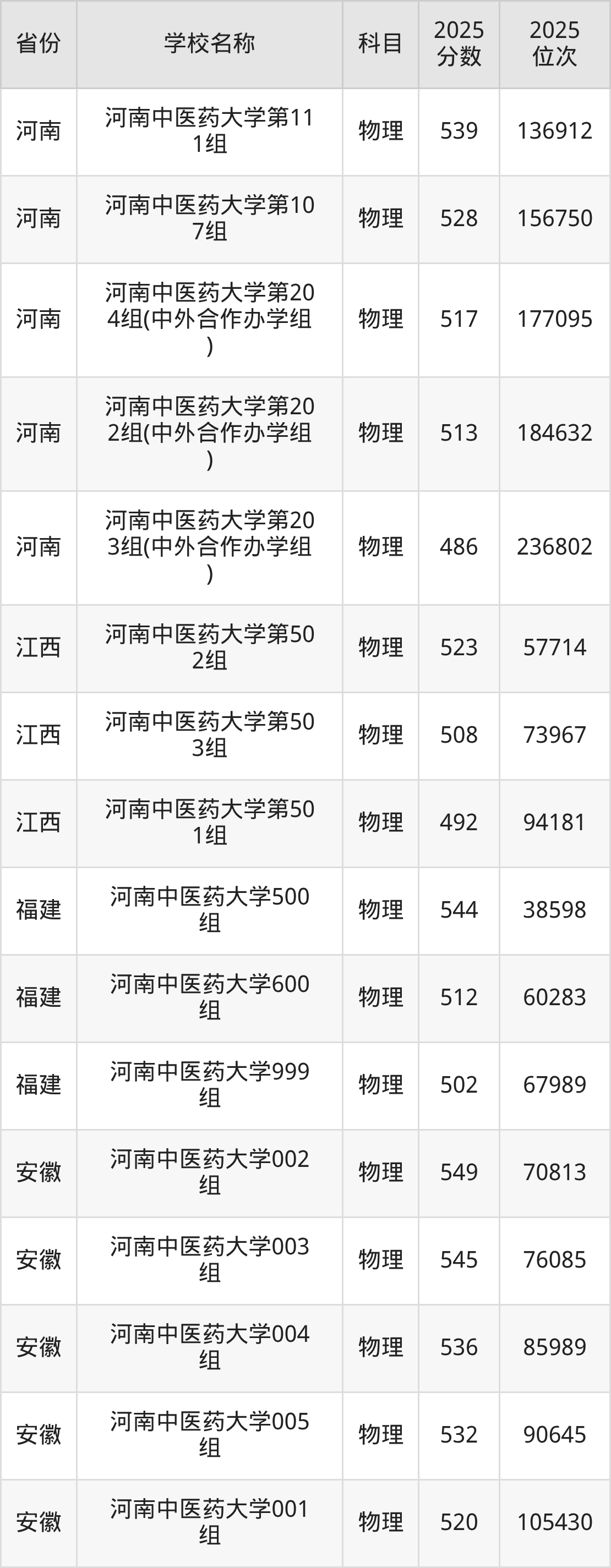河南中医药大学2025年有16个专业组面向河南省内首选了物理科目的考生招生:
