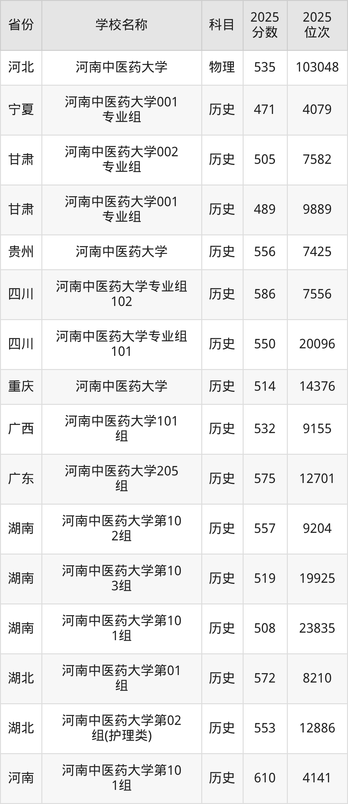二、河南中医药大学各专业录取分数线