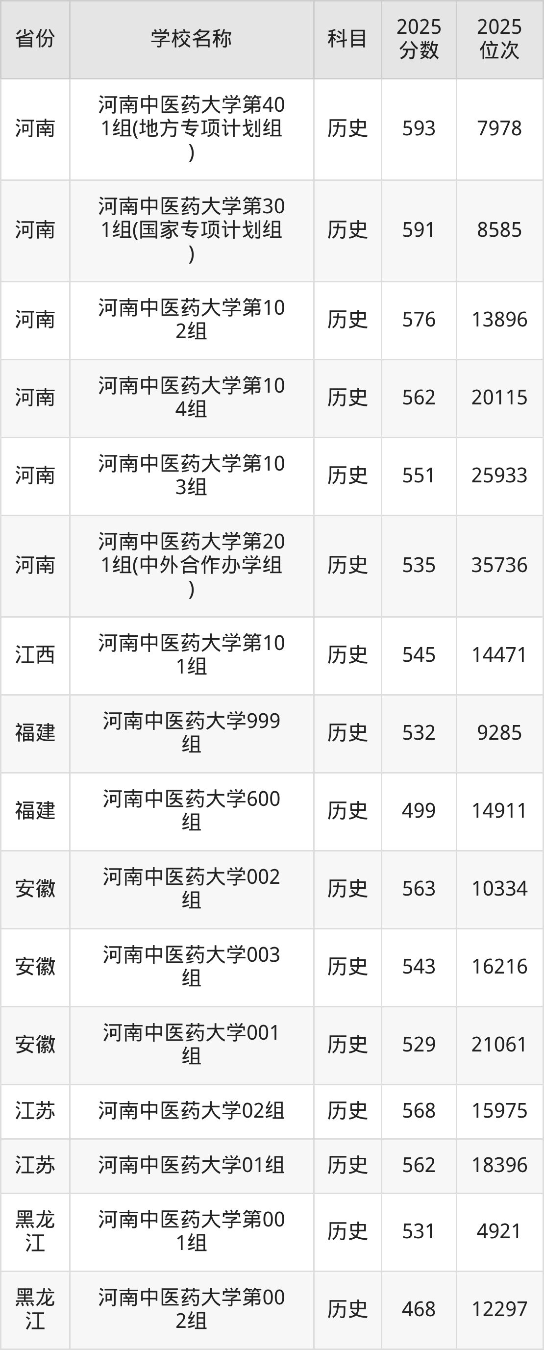 河南中医药大学2025年有8个专业组面向河南省内首选了历史科目的考生招生: