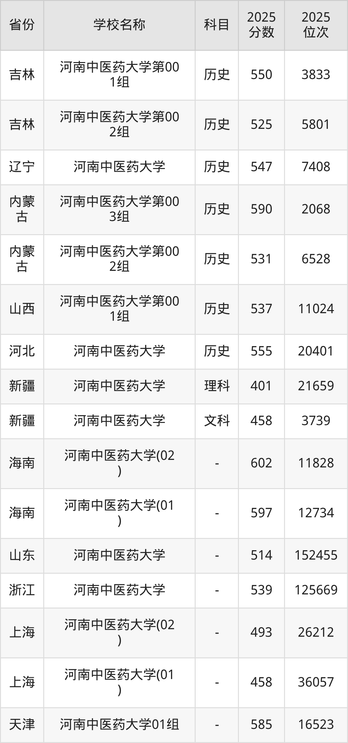 一、2025河南中医药大学录取分数线