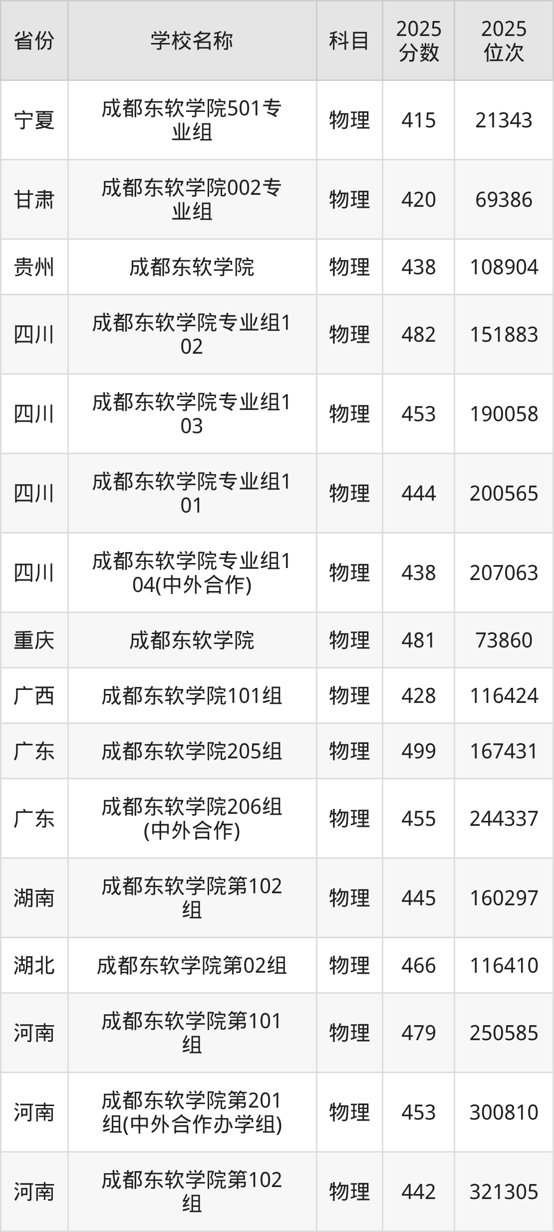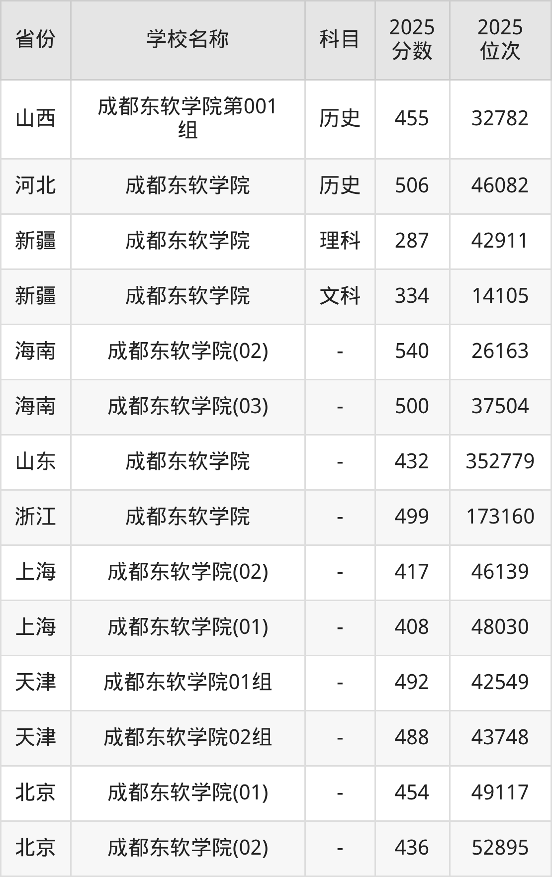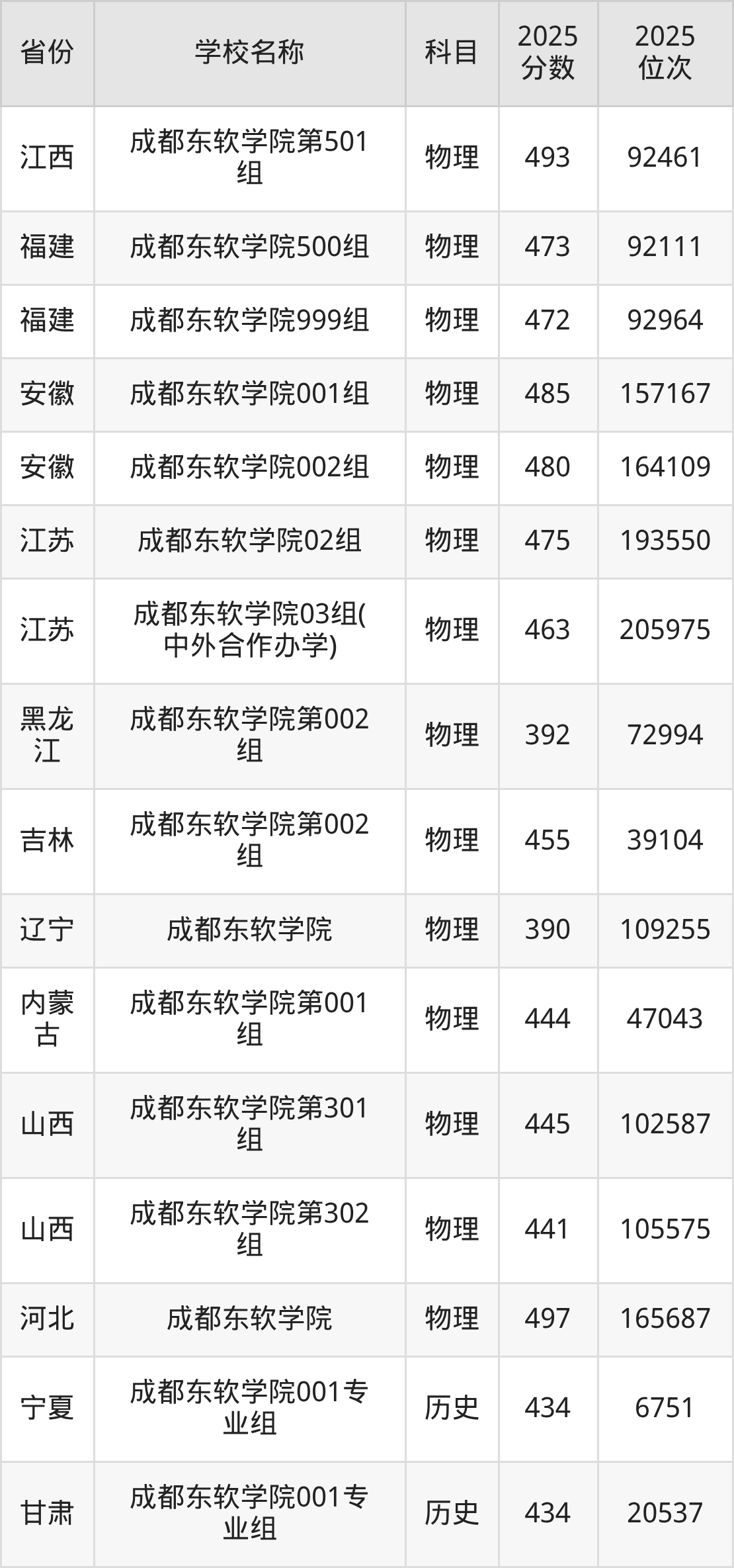 再看四川高考2025年本科批次线,历史类是467分、物理类是438分。通过对比发现:成都东软学院2025年历史类最低分比本科线高8分,物理类最低分与本科线相等。2026届四川高考生,可通过每一次模考划线,来判断自己的成绩是否有机会被成都东软学院录取。