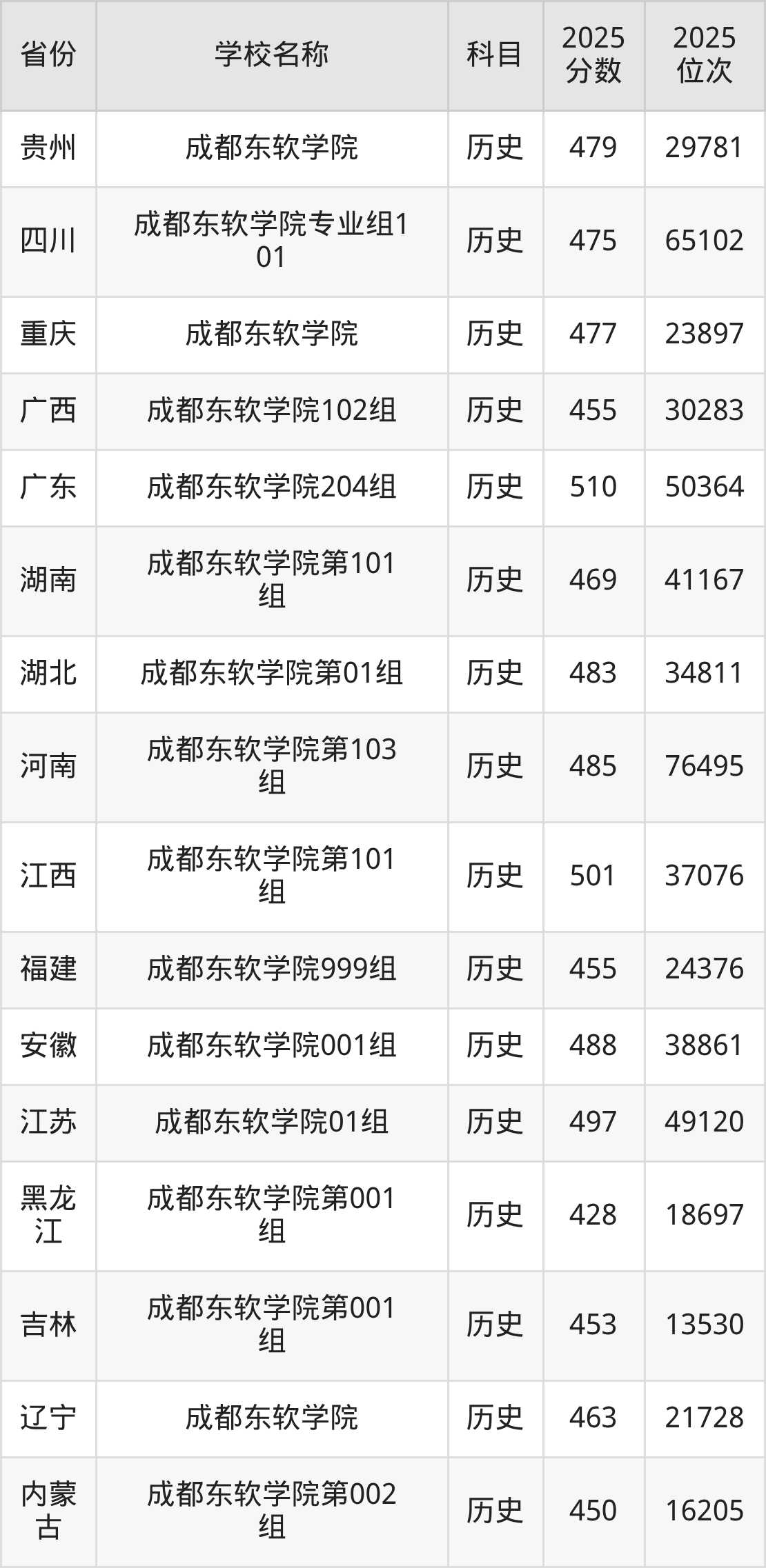 成都东软学院2025年有1个专业组面向四川省内首选了历史科目的考生招生: