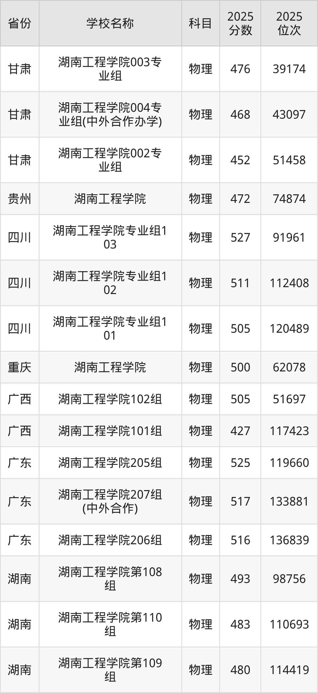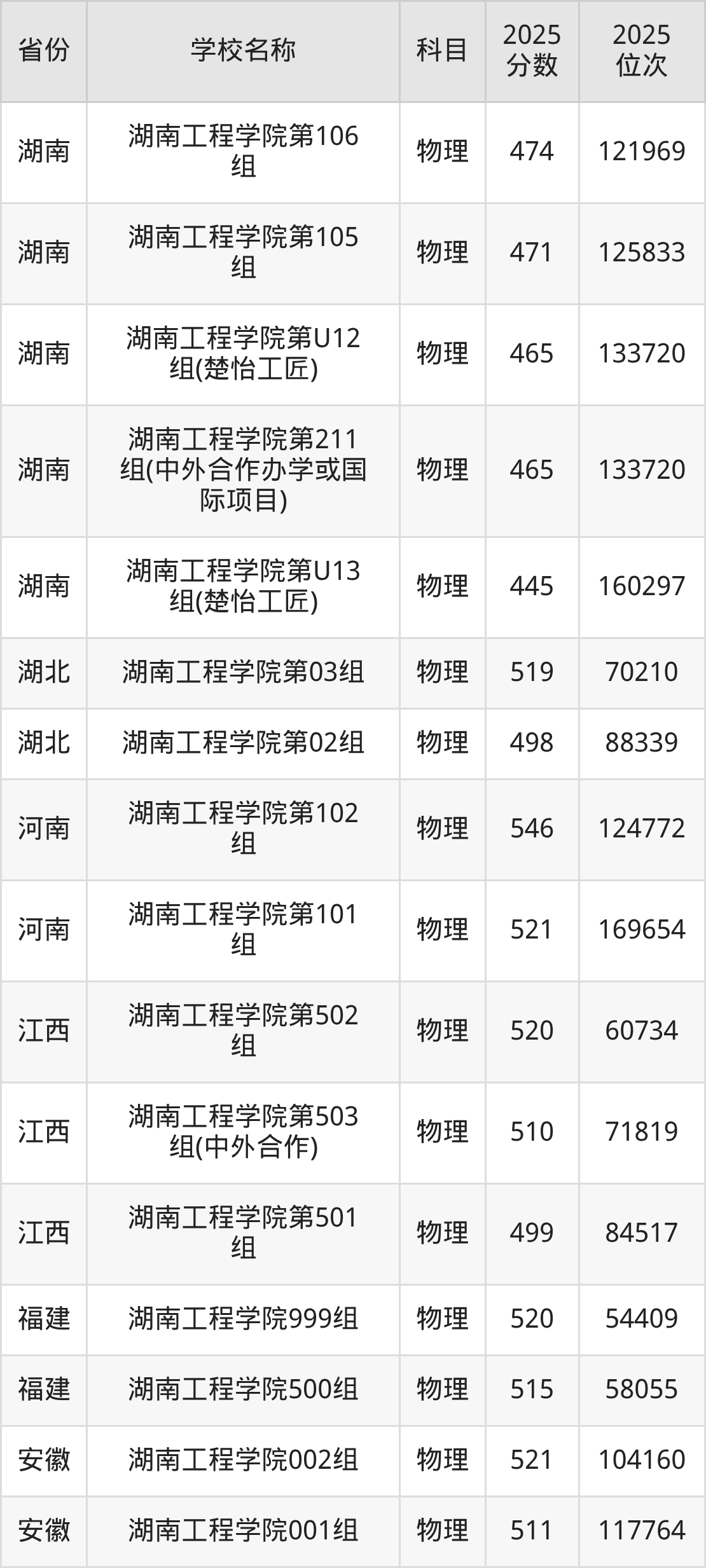 湖南工程学院2025年有8个专业组面向湖南省内首选了物理科目的考生招生: