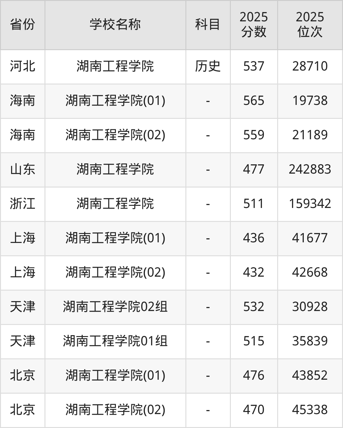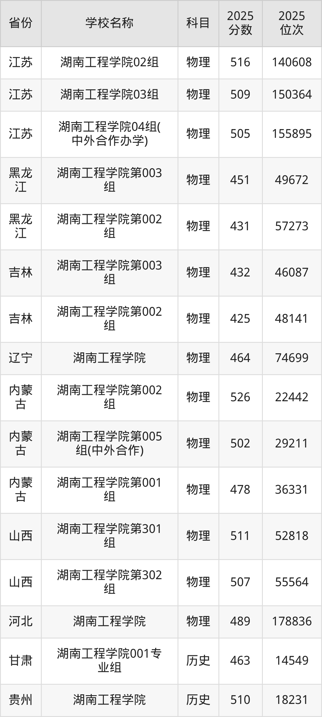 再看湖南高考2025年本科批次线,历史类是446分、物理类是405分。通过对比发现:湖南工程学院2025年历史类最低分比本科线高51分,物理类最低分比本科线高40分。2026届湖南高考生,可通过每一次模考划线,来判断自己的成绩是否有机会被湖南工程学院录取。