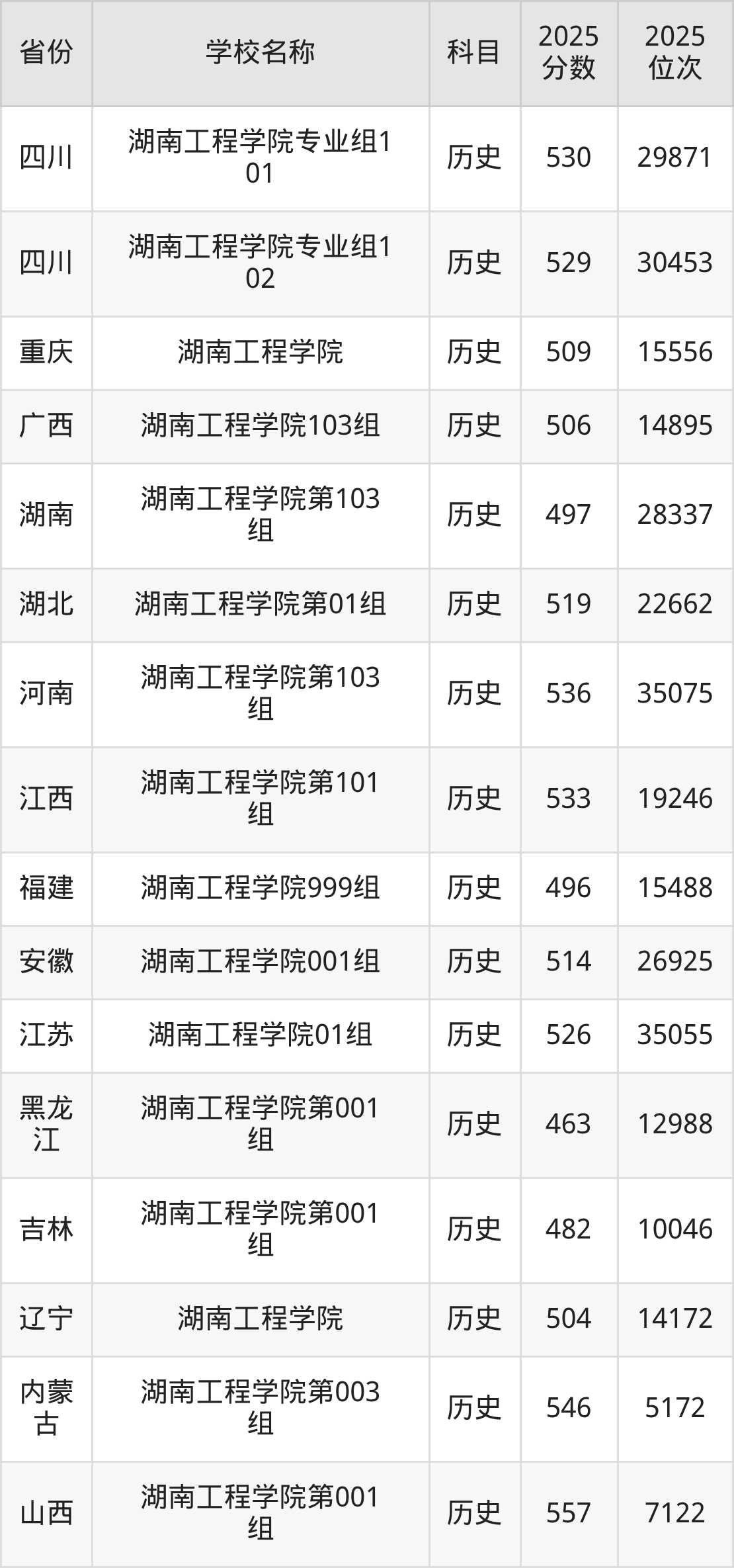 湖南工程学院2025年有1个专业组面向湖南省内首选了历史科目的考生招生:
