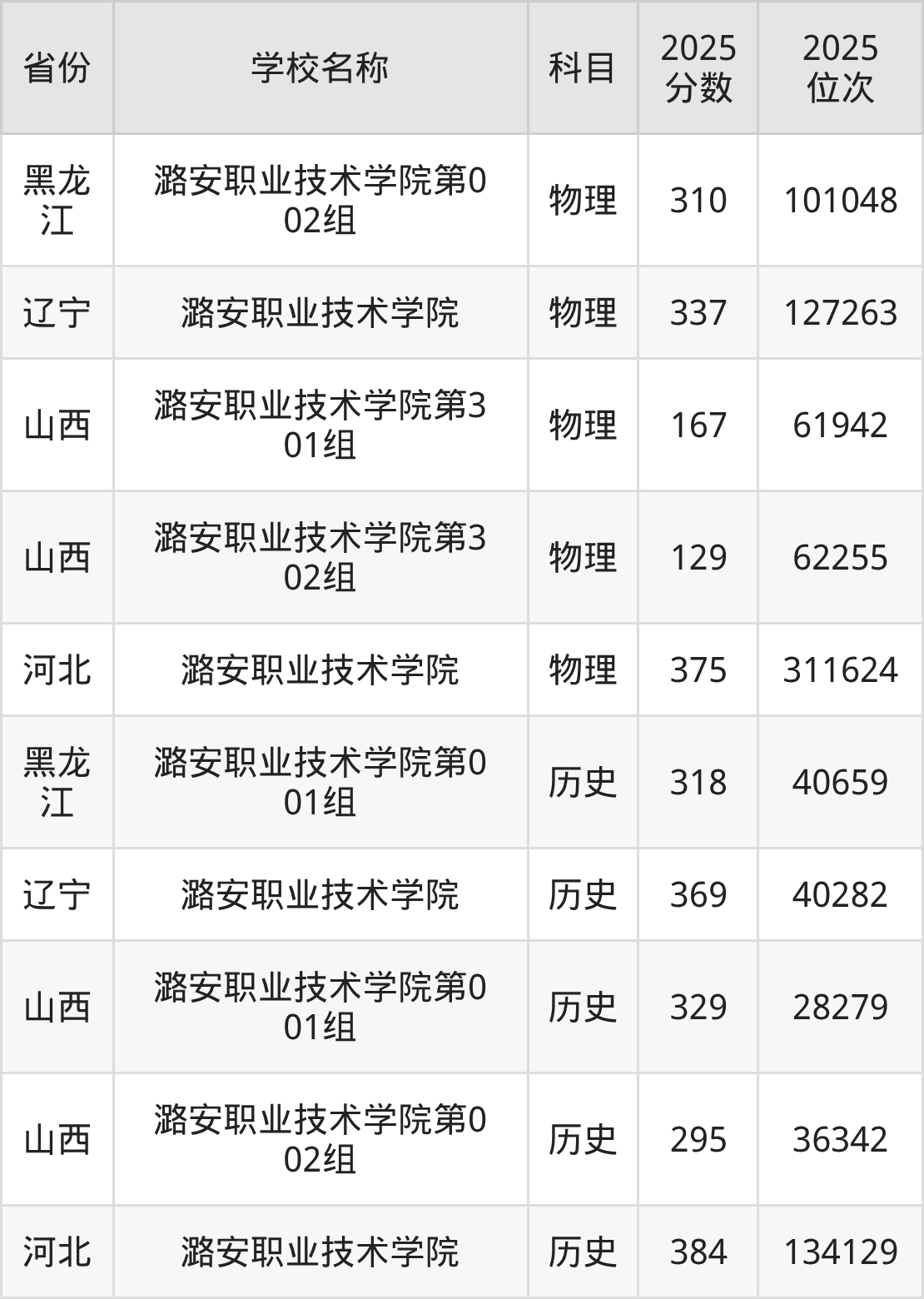 再看山西高考2025年专科批次线,历史类是100分、物理类是100分。通过对比发现:潞安职业技术学院2025年历史类最低分比专科线高195分,物理类最低分比专科线高29分。2026届山西高考生,可通过每一次模考划线,来判断自己的成绩是否有机会被潞安职业技术学院录取。