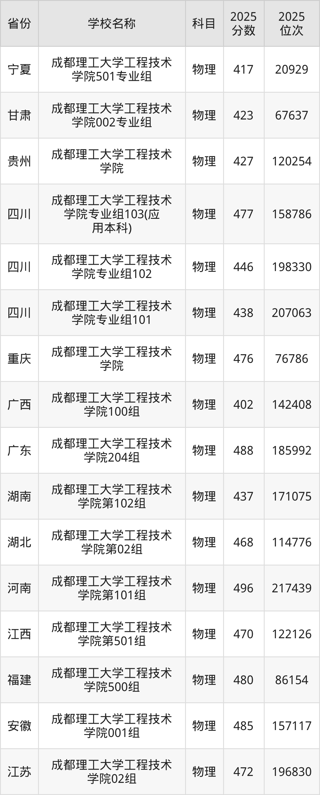 成都理工大学工程技术学院2025年有3个专业组面向四川省内首选了物理科目的考生招生: