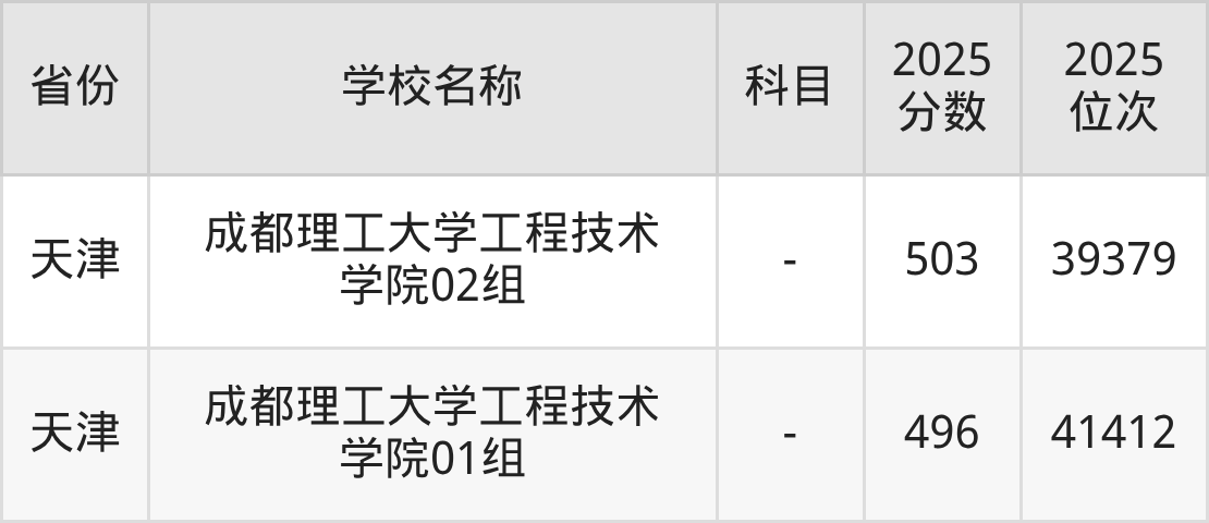 再看四川高考2025年本科批次线,历史类是467分、物理类是438分。通过对比发现:成都理工大学工程技术学院2025年历史类最低分比本科线高17分,物理类最低分与本科线相等。2026届四川高考生,可通过每一次模考划线,来判断自己的成绩是否有机会被成都理工大学工程技术学院录取。