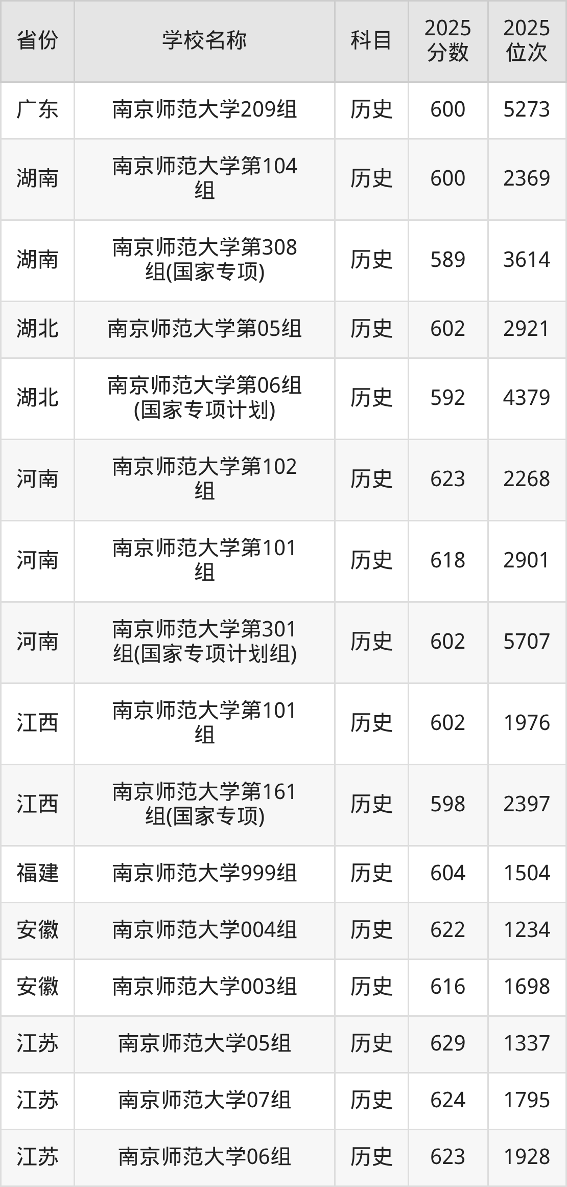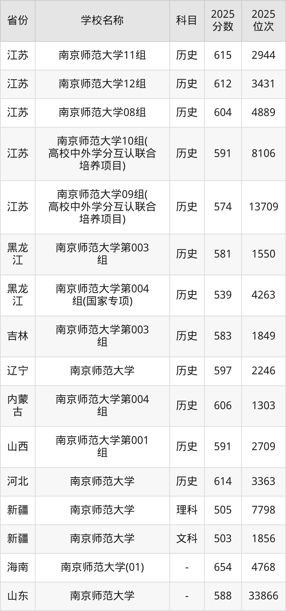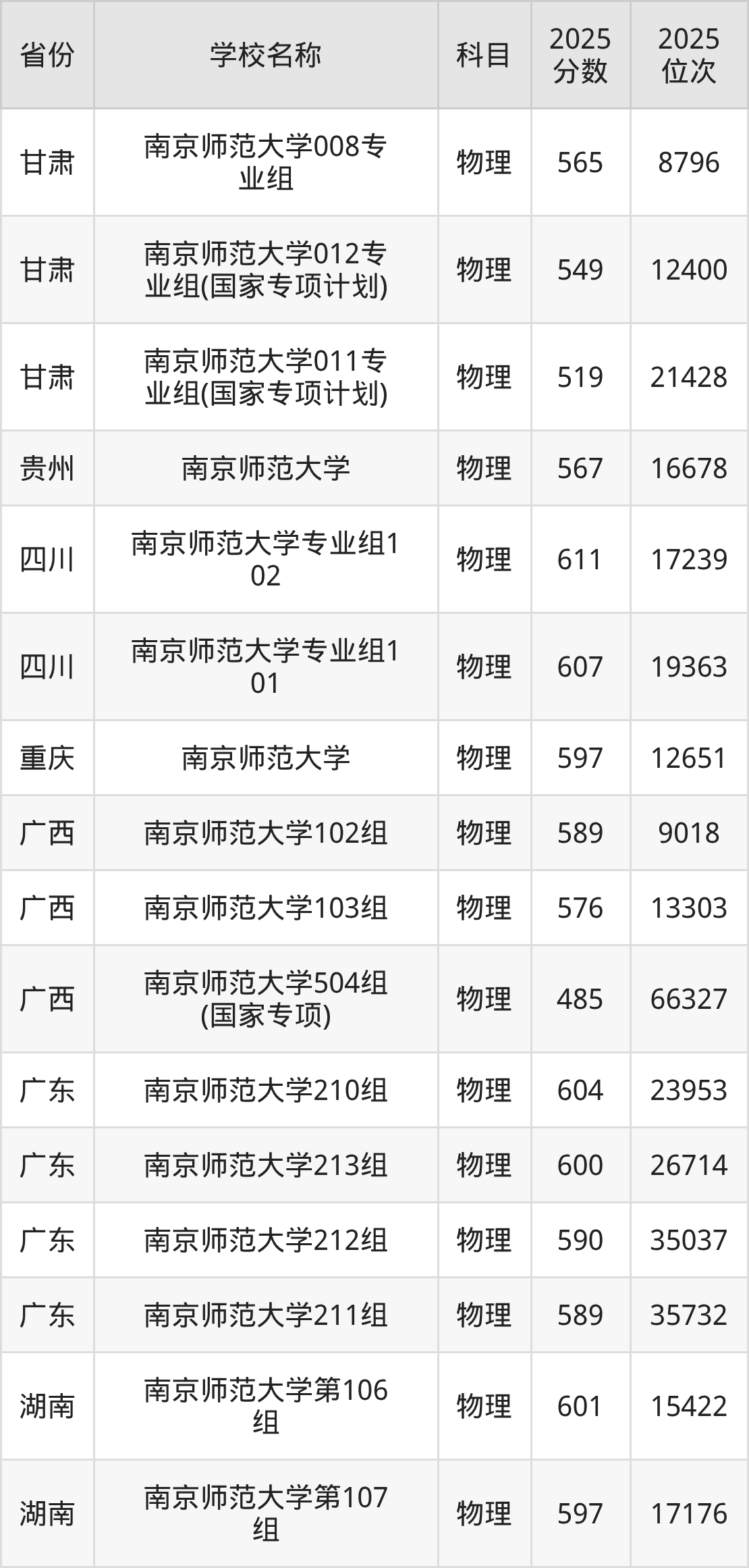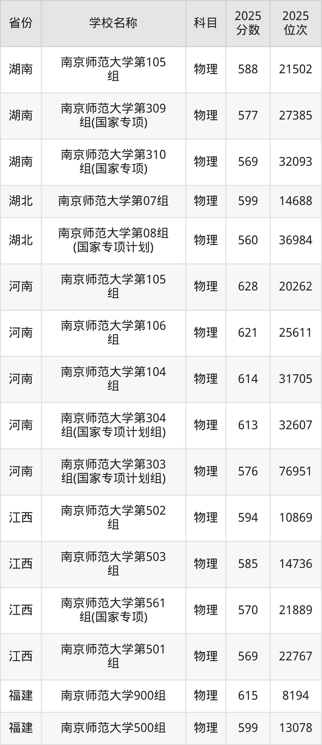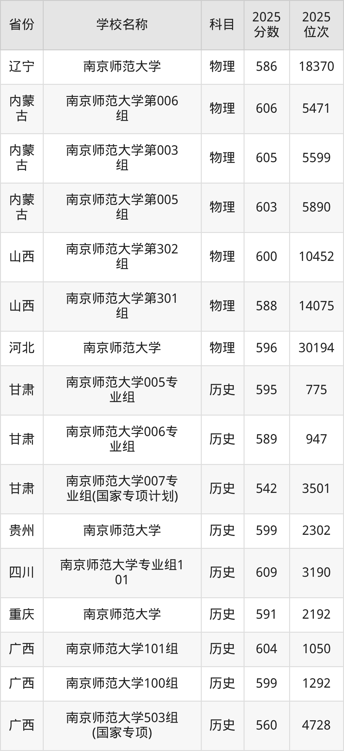 二、南京师范大学各专业录取分数线