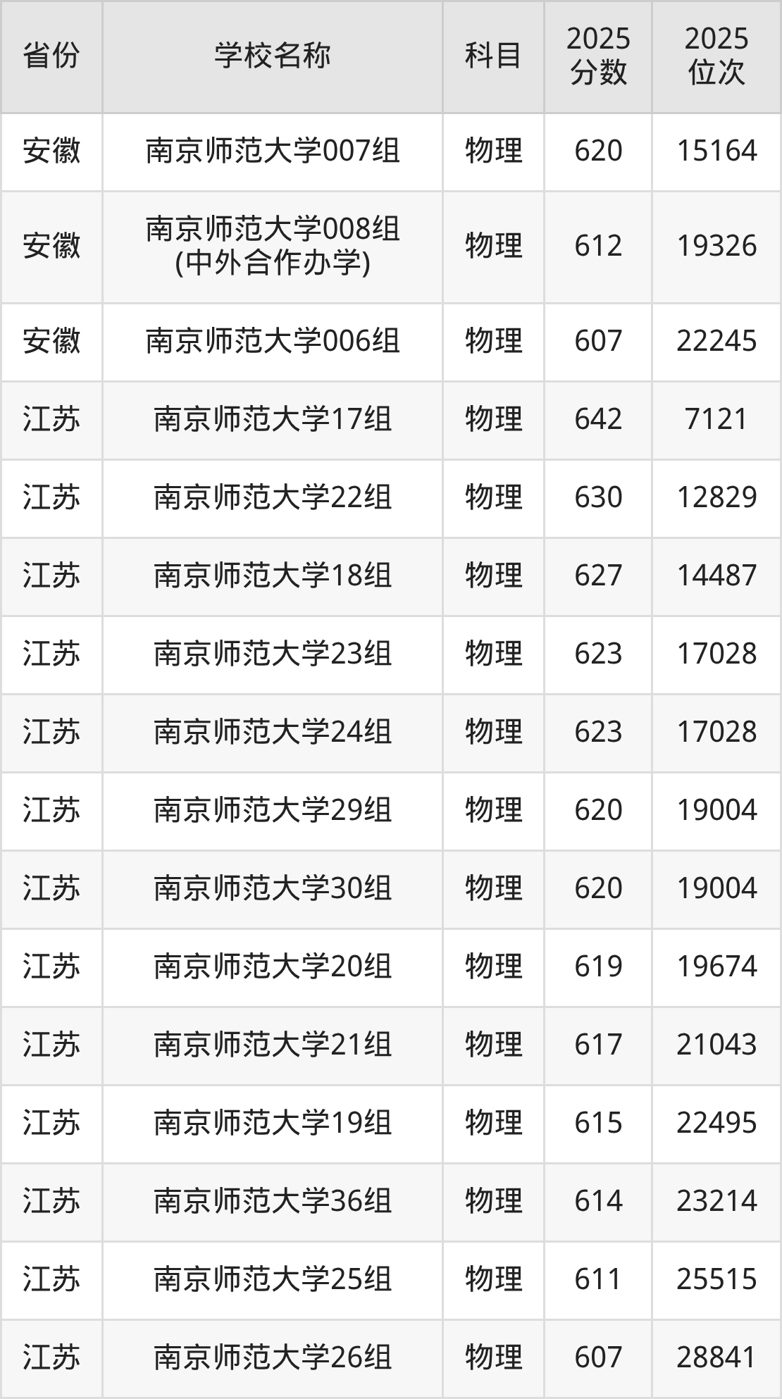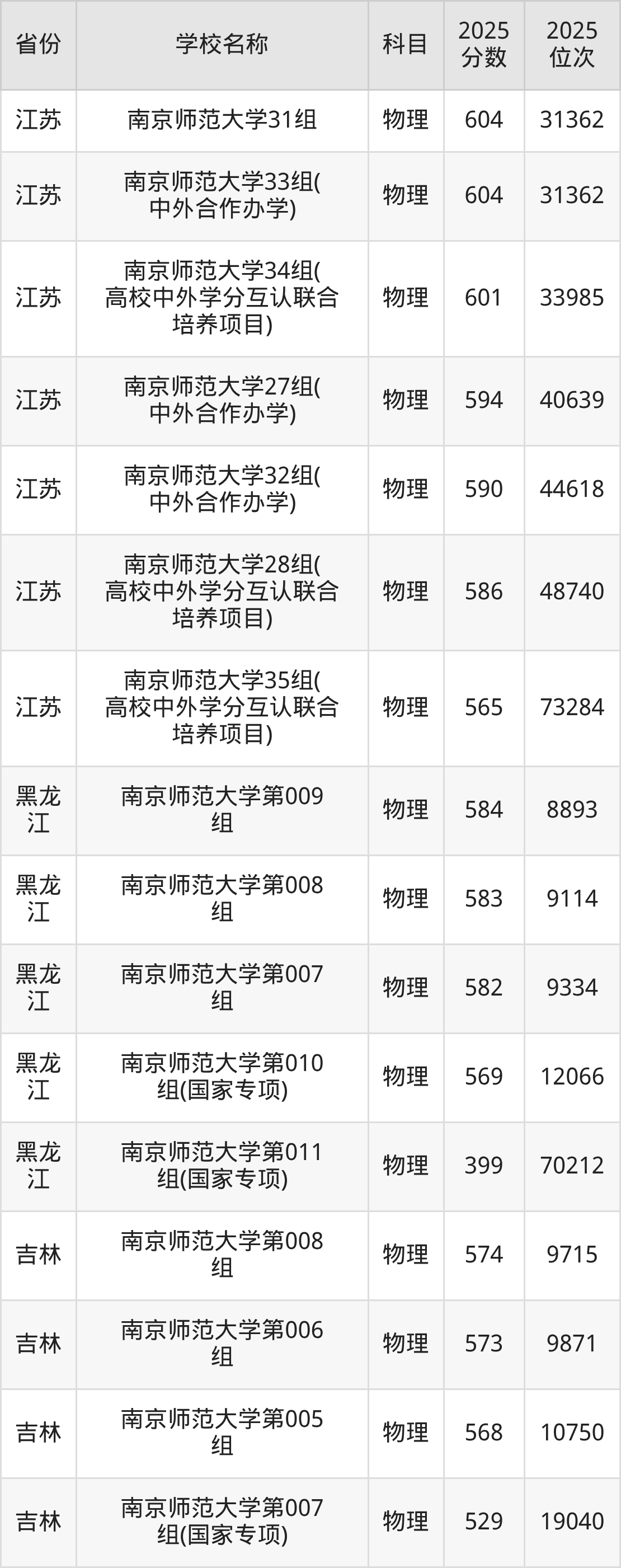 南京师范大学2025年有24个专业组面向江苏省内首选了物理科目的考生招生: