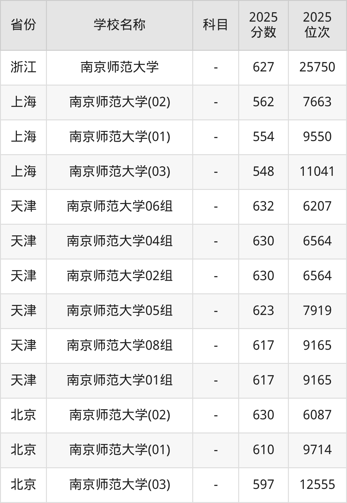 一、2025南京师范大学录取分数线