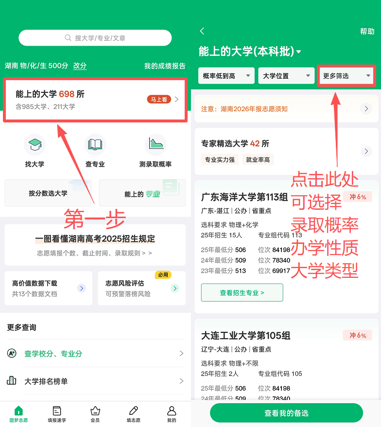 这一步解决的是志愿填报中最核心的问题:先搞清楚“能上哪些大学”,再谈“选哪所大学”。