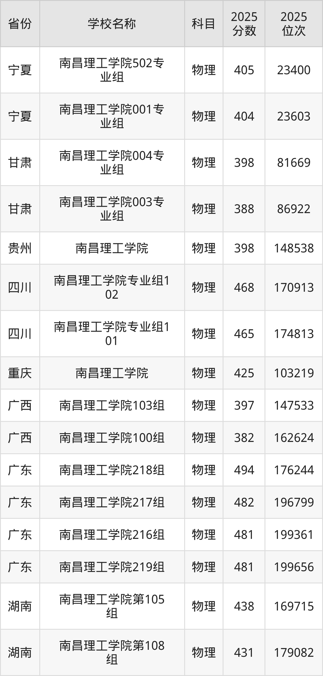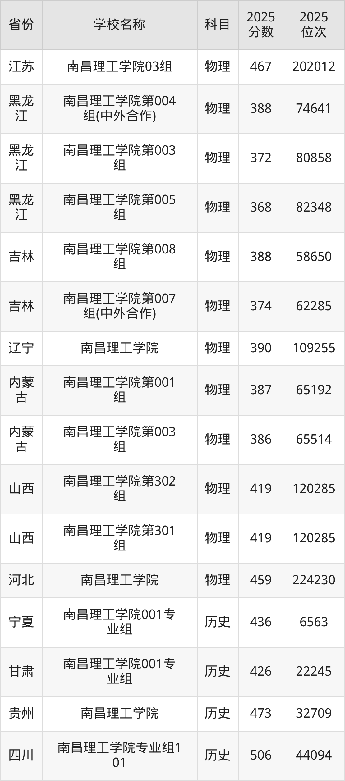 可见,南昌理工学院的不同专业组,在“招生专业、录取分数线”等方面有较大区别。物理类专业组之间的分数线差距高达25分。