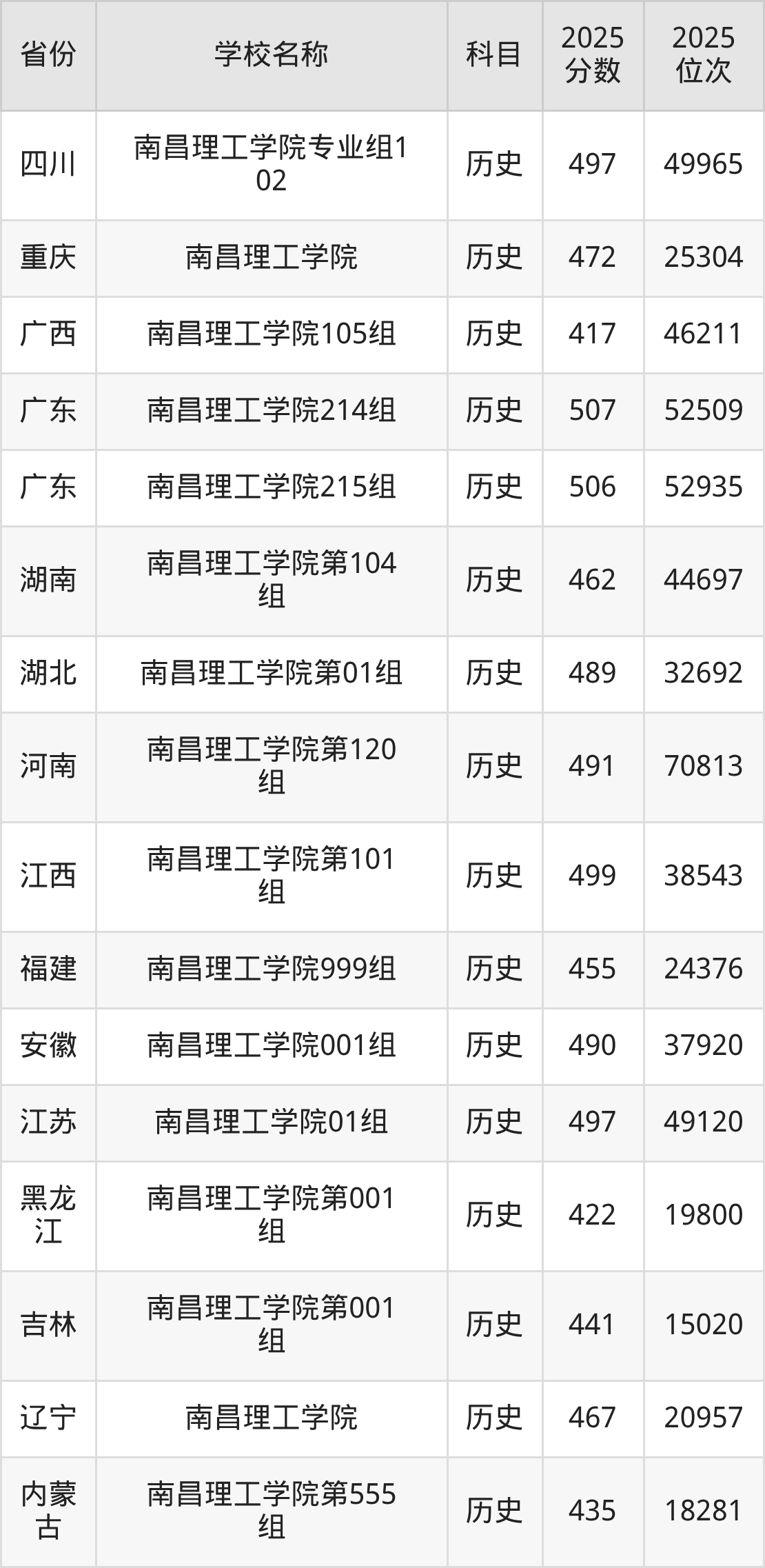 南昌理工学院2025年有3个专业组面向江西省内首选了历史科目的考生招生: