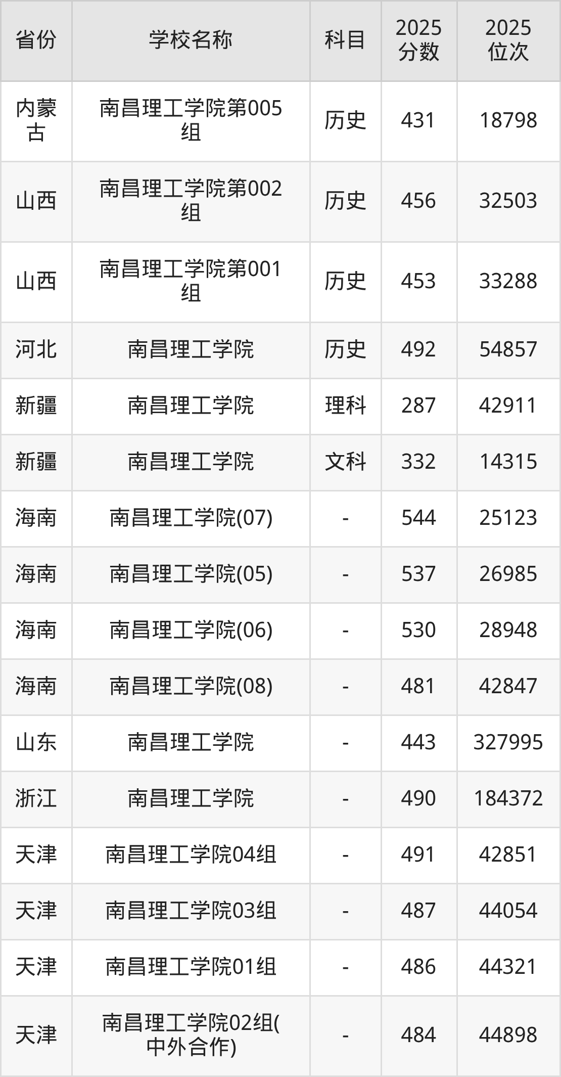 再看江西高考2025年本科批次线,历史类是486分、物理类是429分。通过对比发现:南昌理工学院2025年历史类最低分比本科线高13分,物理类最低分与本科线相等。2026届江西高考生,可通过每一次模考划线,来判断自己的成绩是否有机会被南昌理工学院录取。