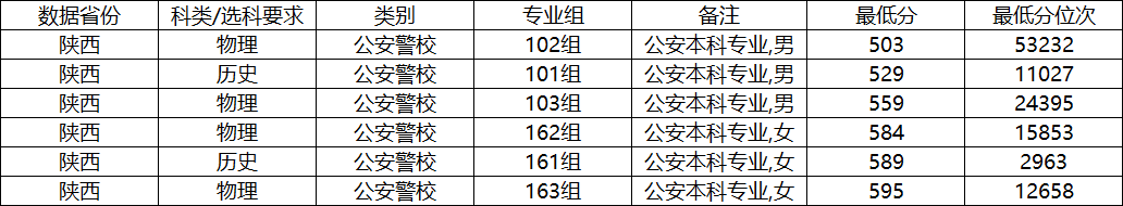 本科提前批公安专业:约381人,全部面向陕西招生,分为公安学类(选科要求:政治)和公安技术类(选科要求:化学)