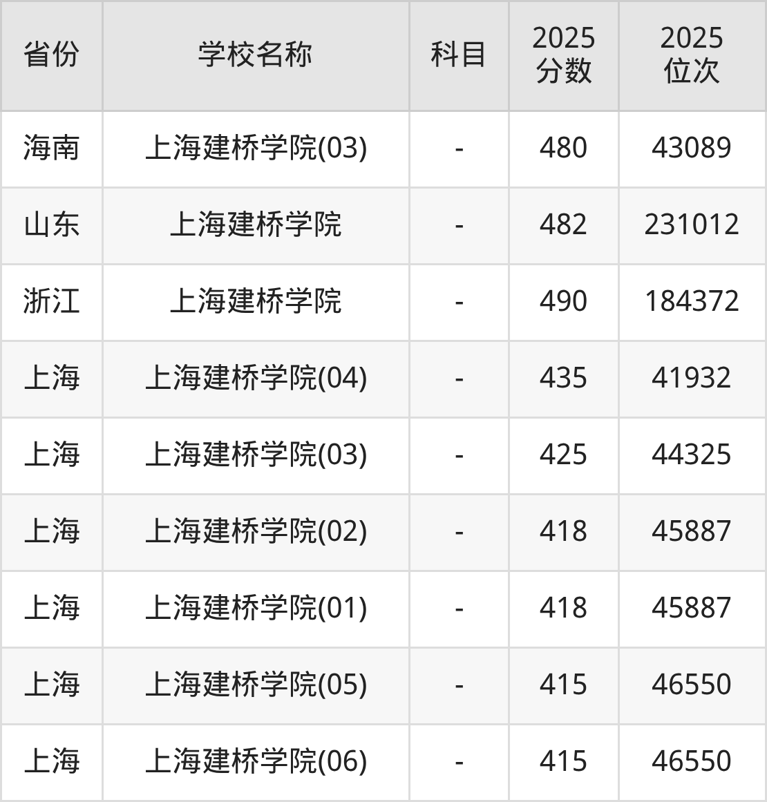 2025年上海建桥学院在全国各省本科的最低录取分数线在283~501分之间。海南高考生最低497分能上上海建桥学院、江苏物理类高考生最低495分能上上海建桥学院……下文将展示上海建桥学院在全国25个高考省份中的本科最低投档录取分汇总!