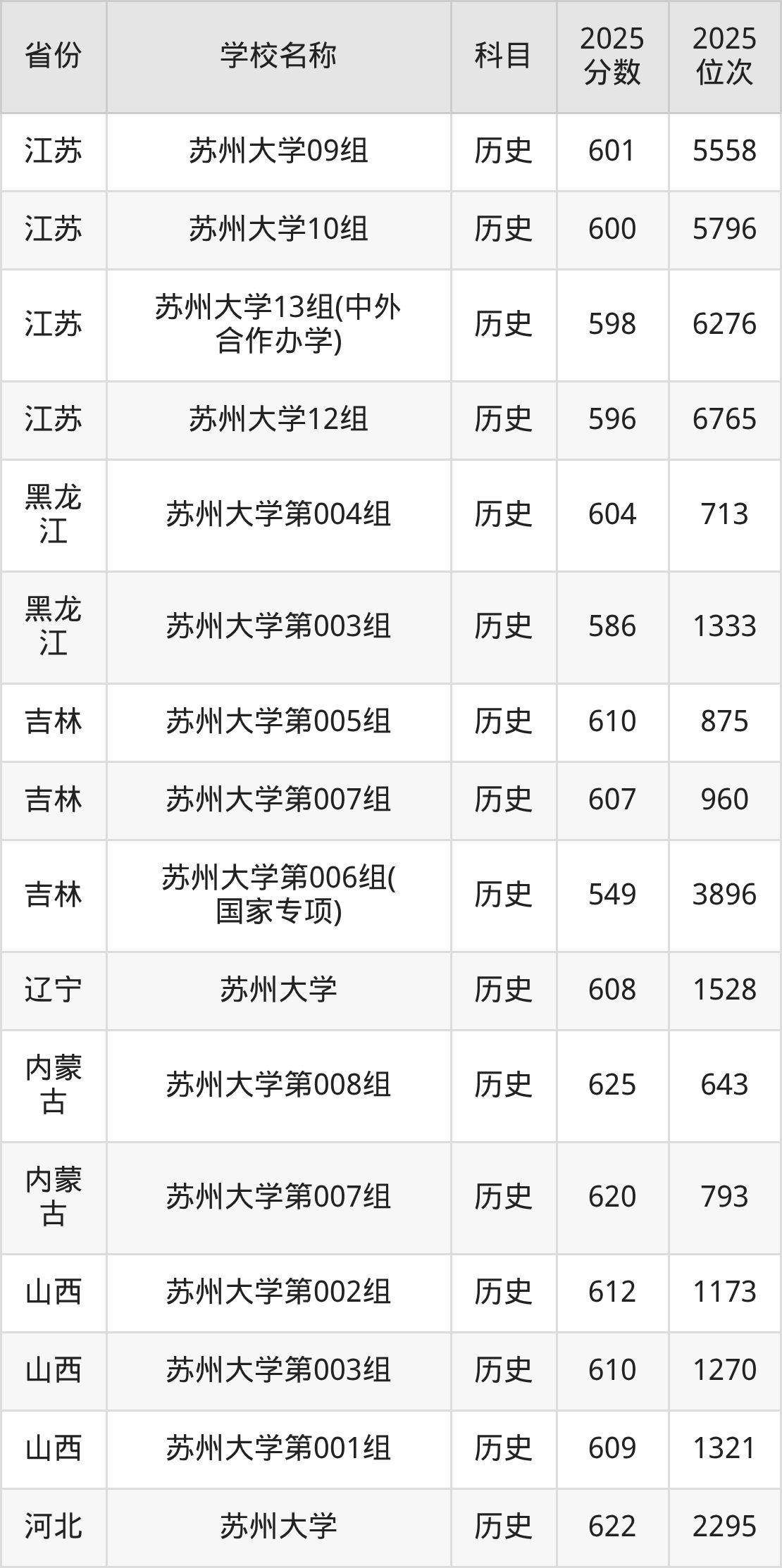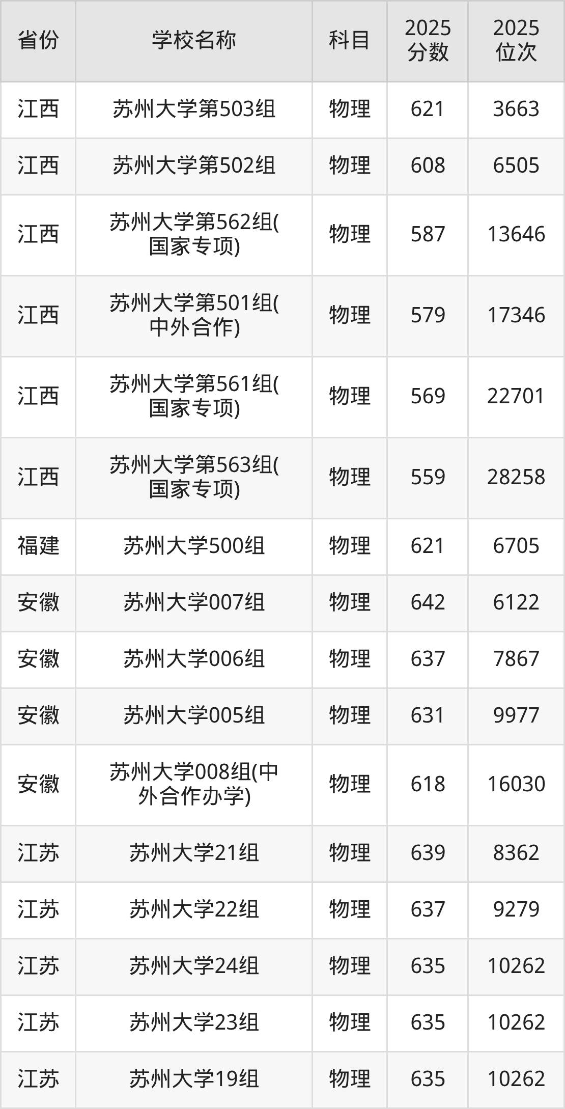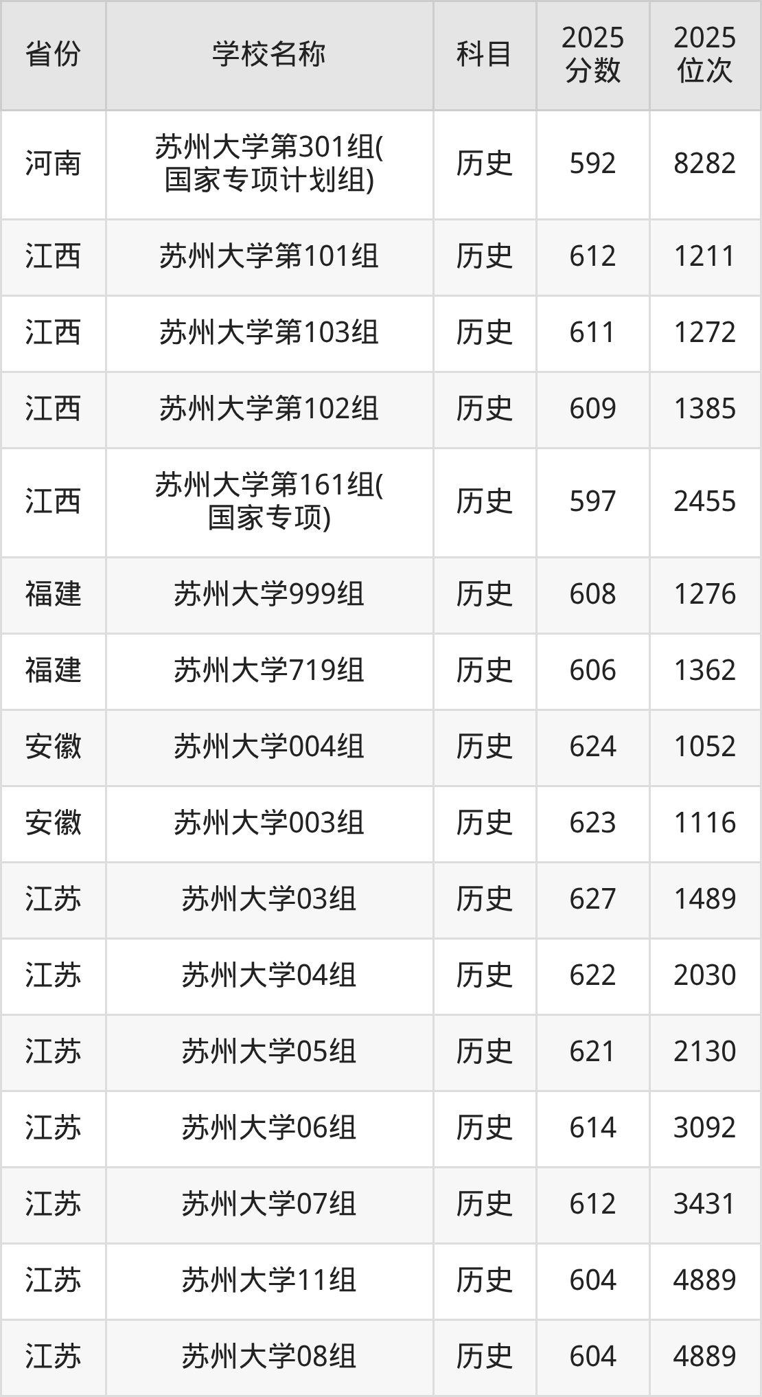 二、苏州大学各专业录取分数线