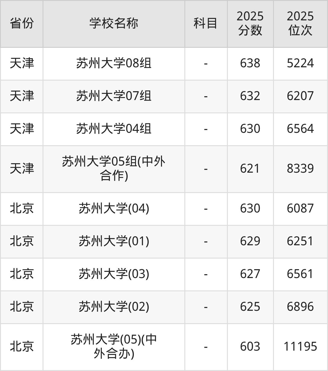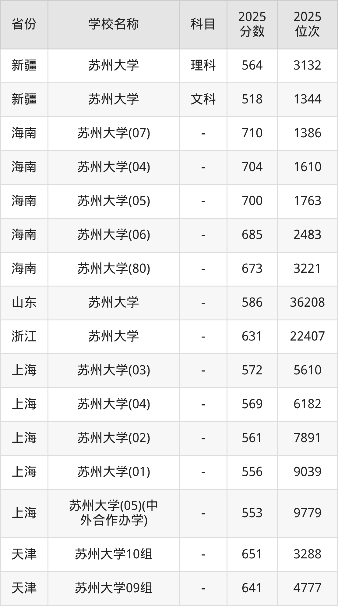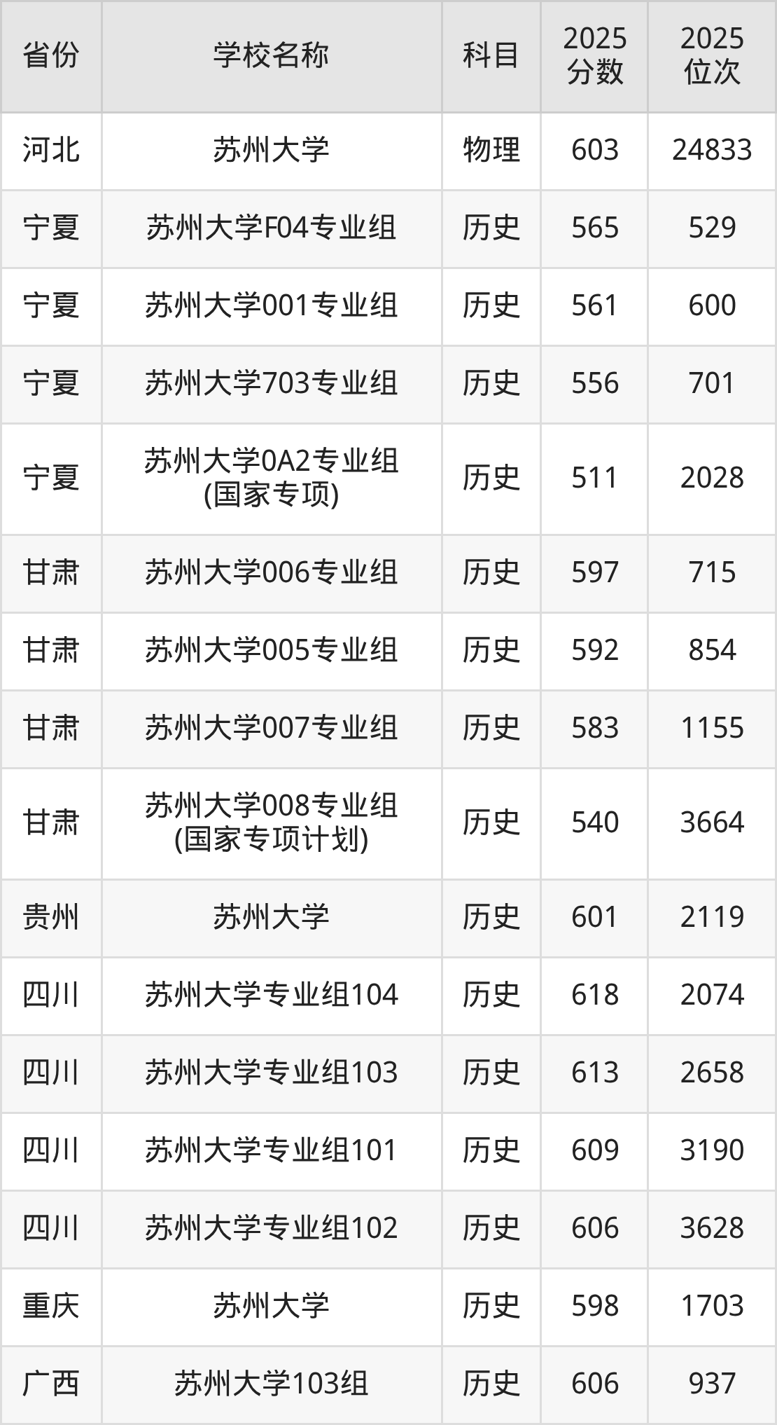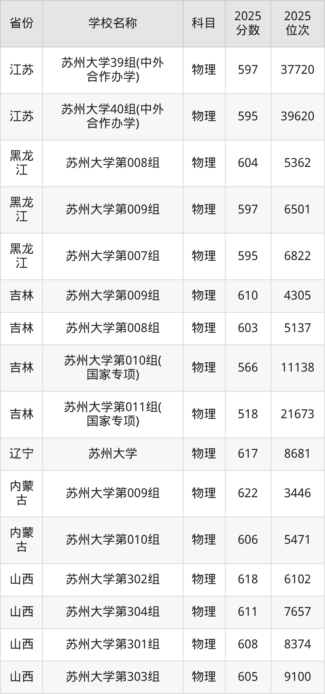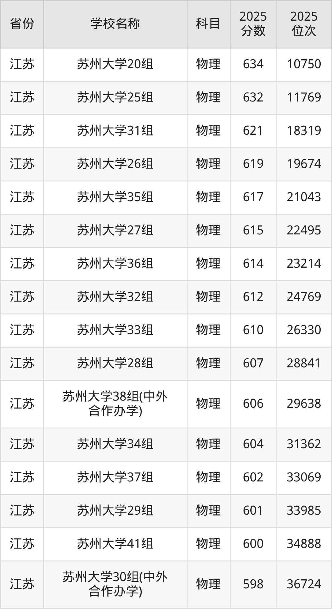 一、2025苏州大学录取分数线