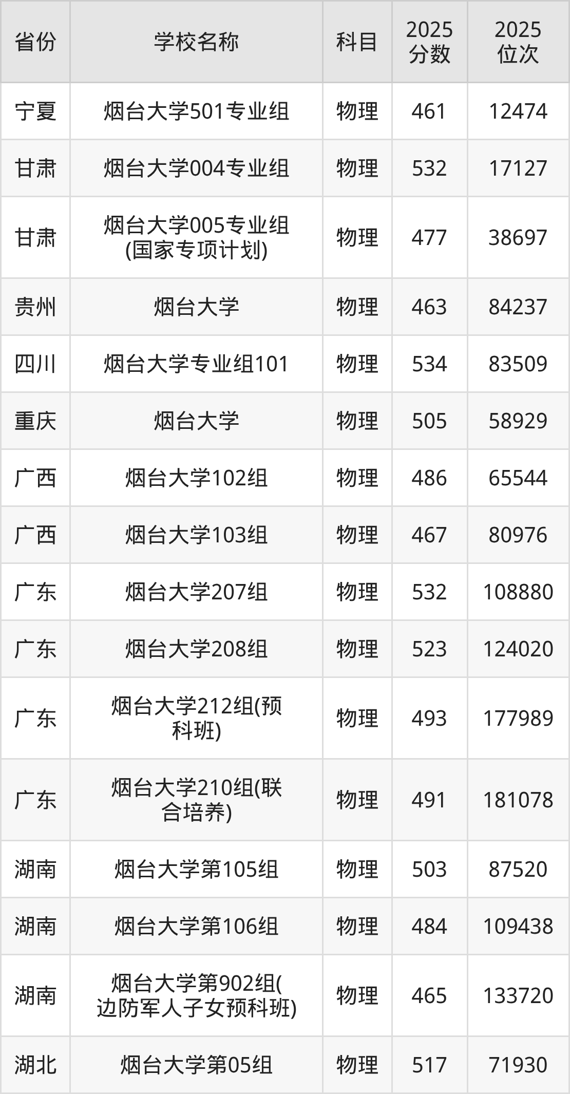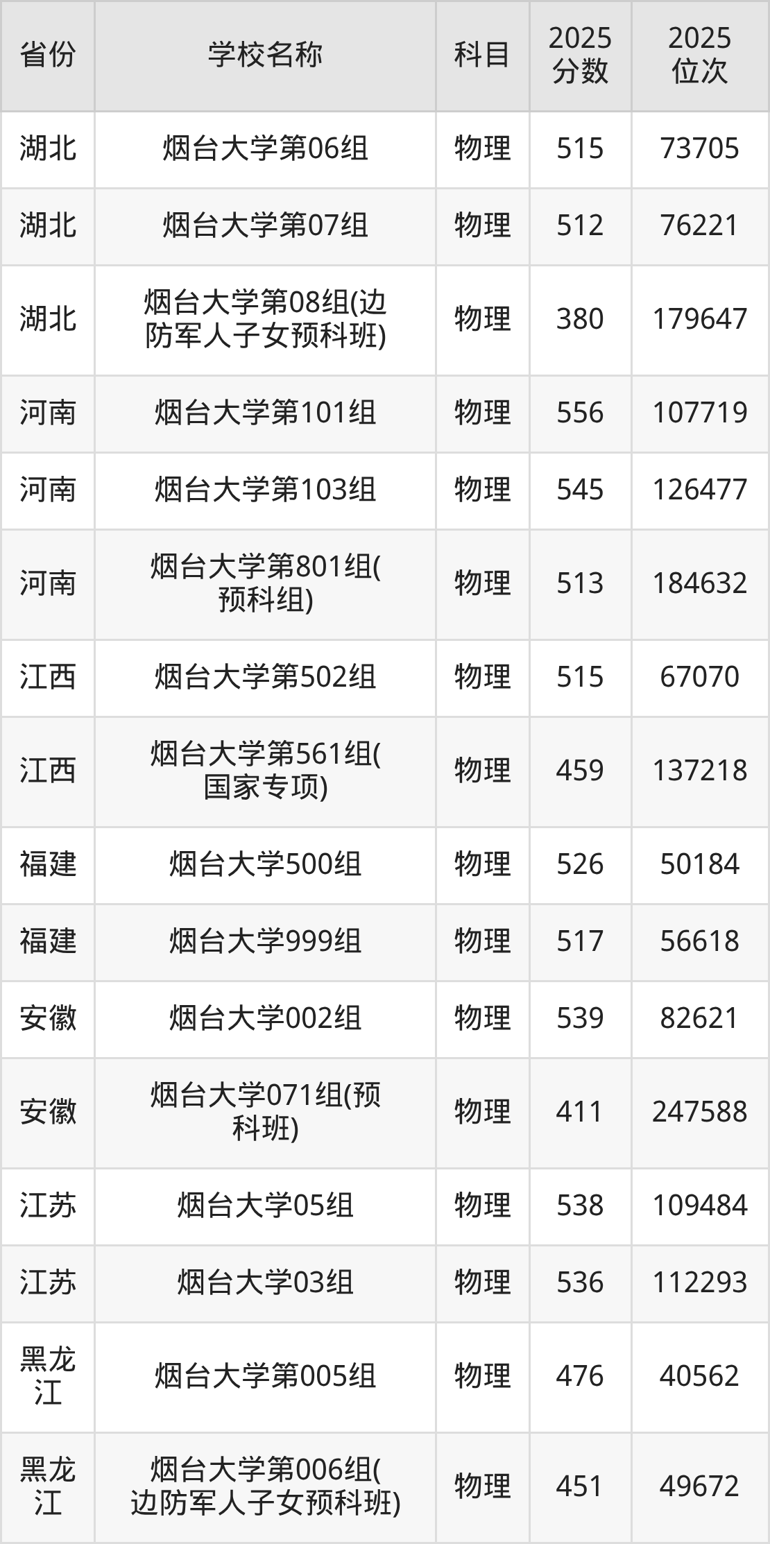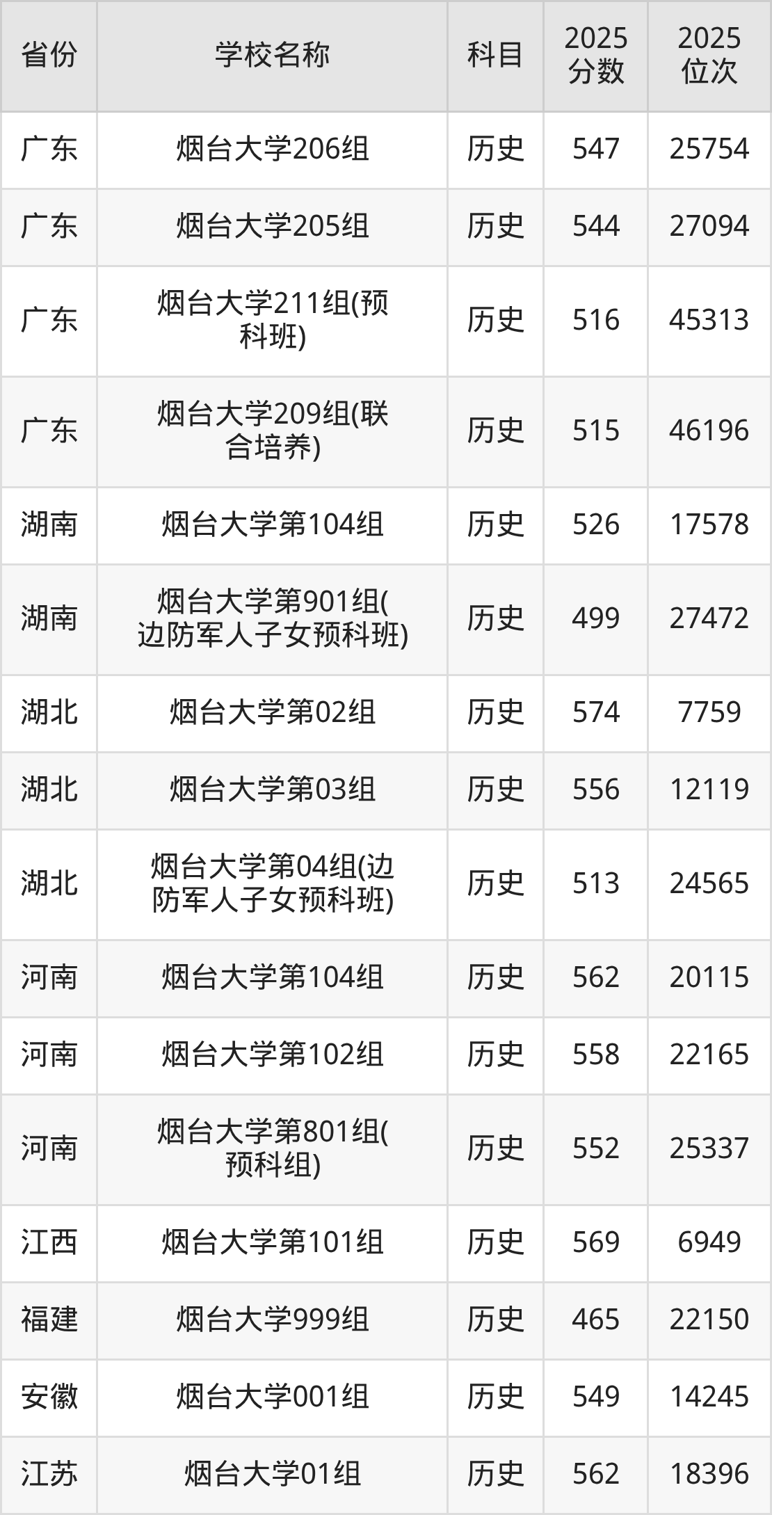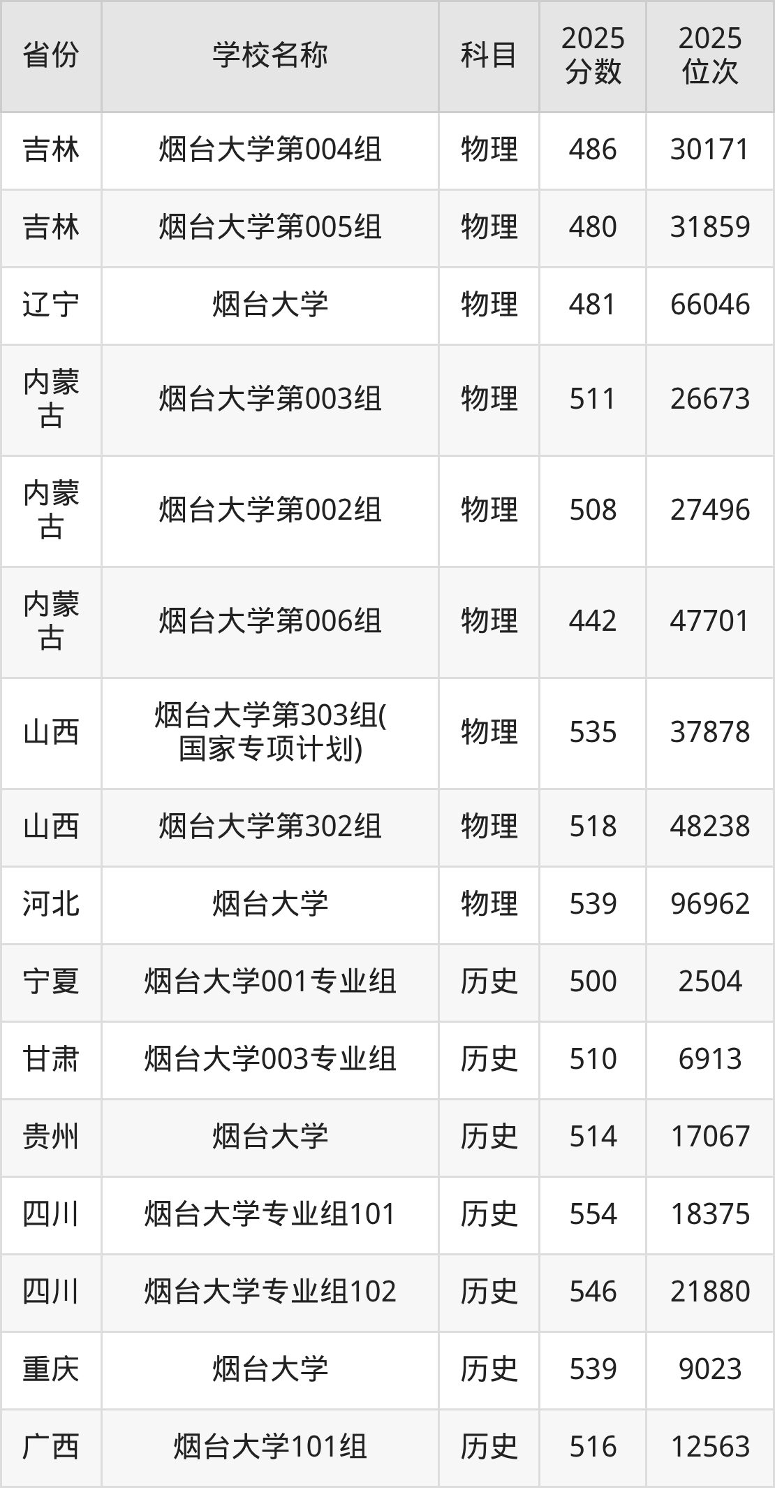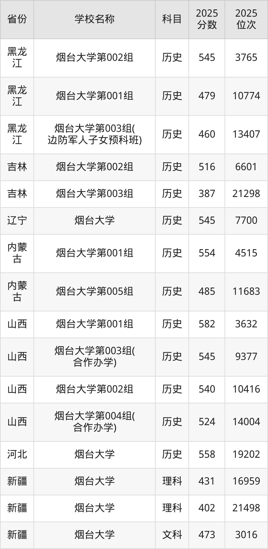 二、烟台大学各专业录取分数线