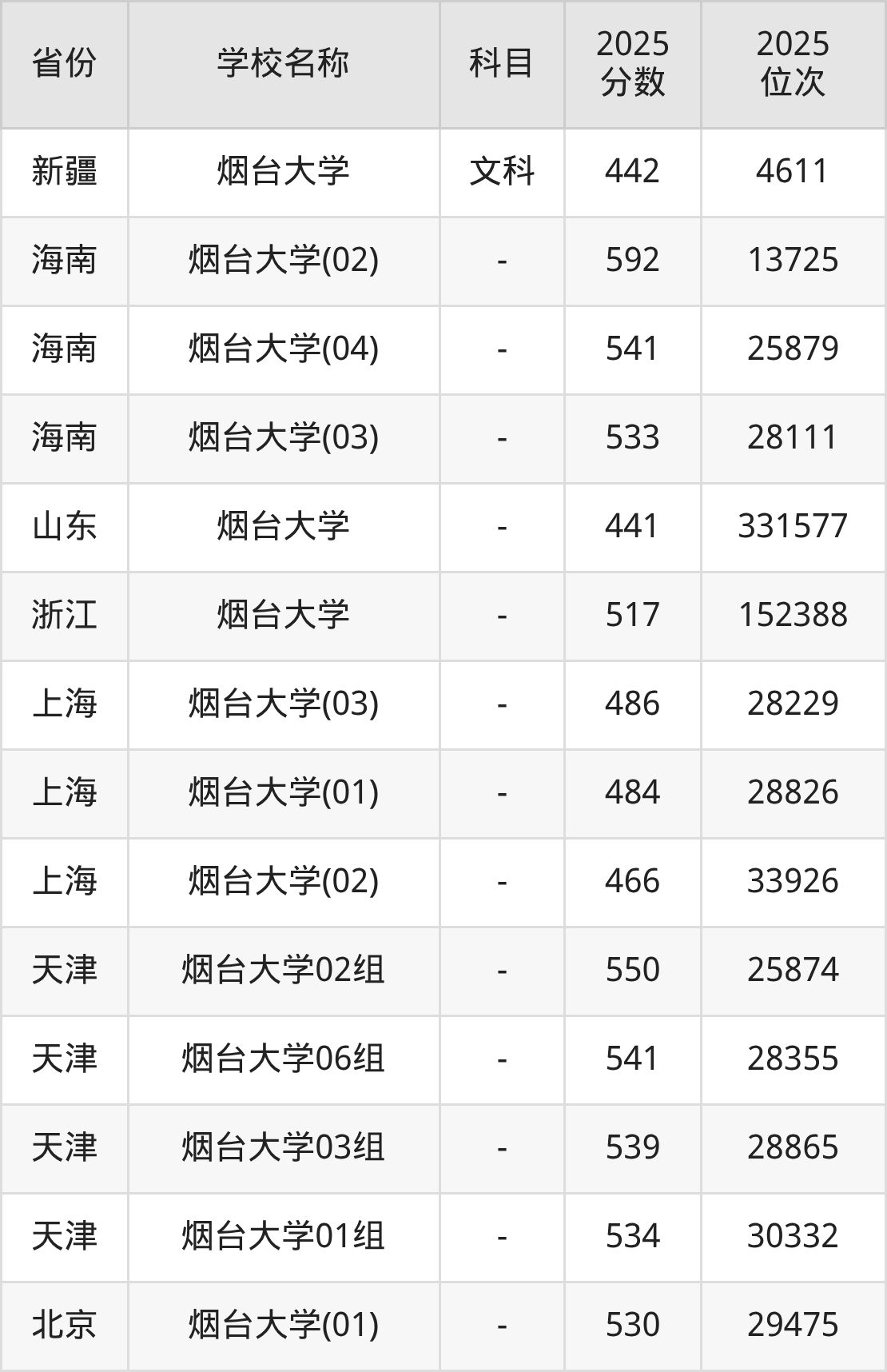 一、2025烟台大学录取分数线