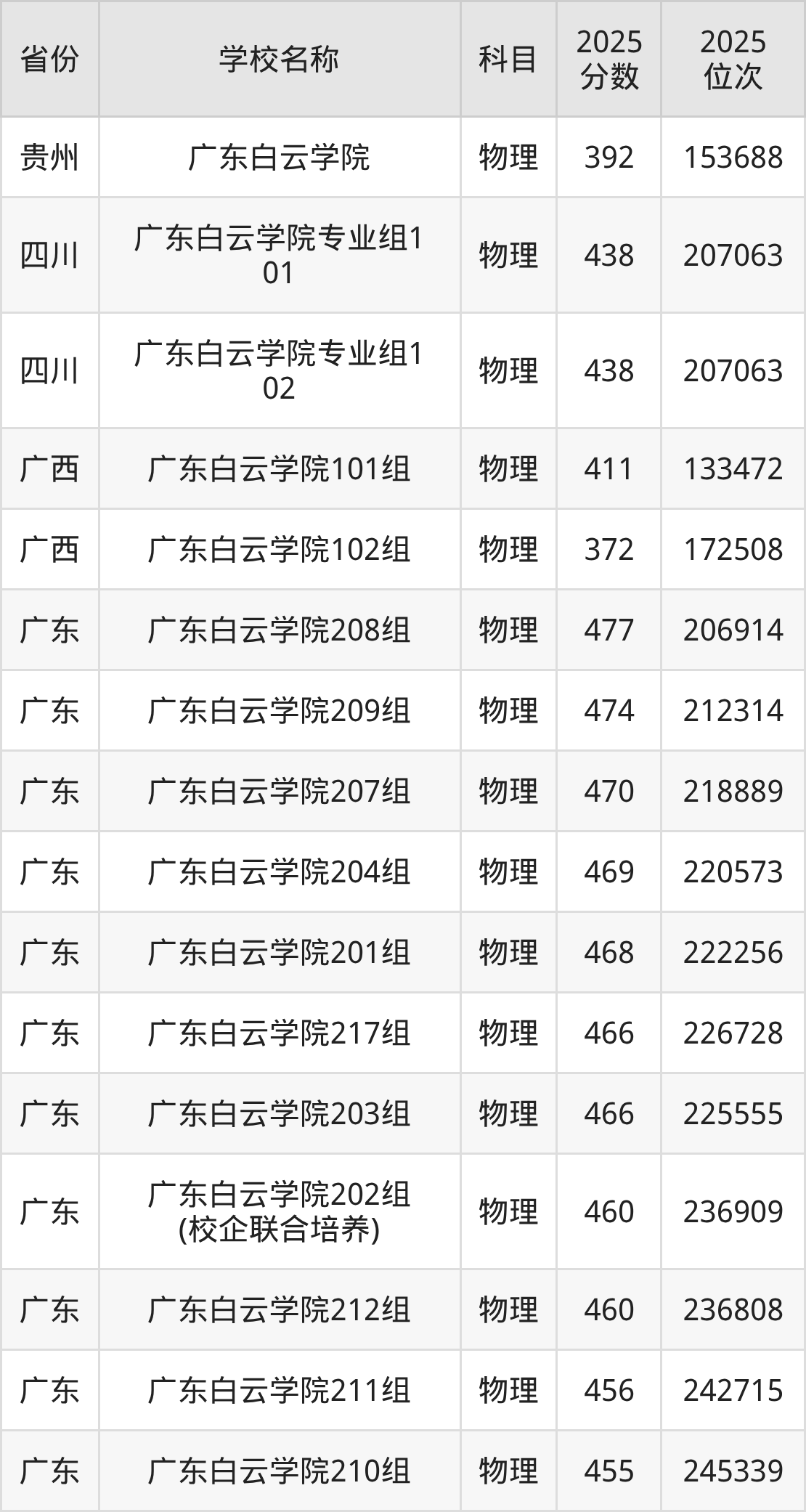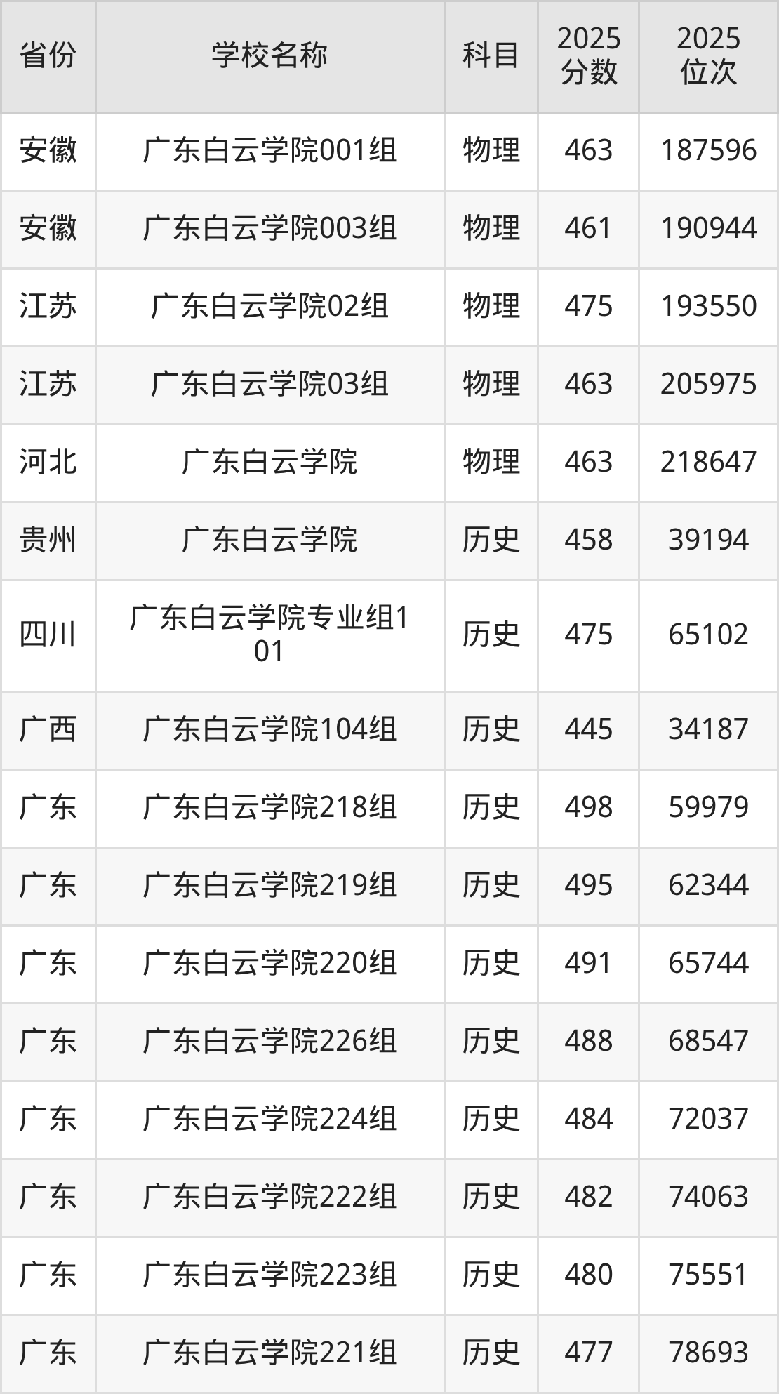 一、2025广东白云学院录取分数线