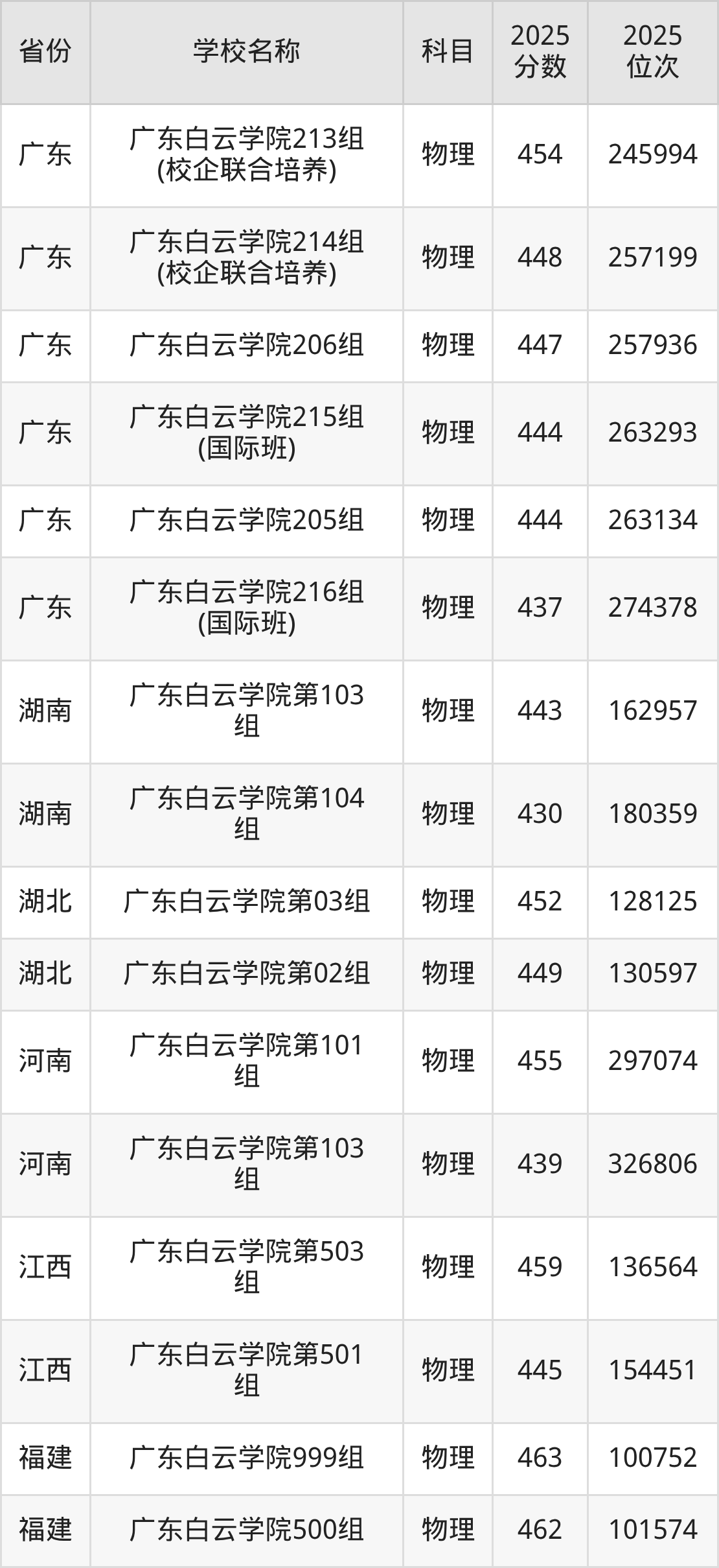 广东白云学院2025年有17个专业组面向广东省内首选了物理科目的考生招生: