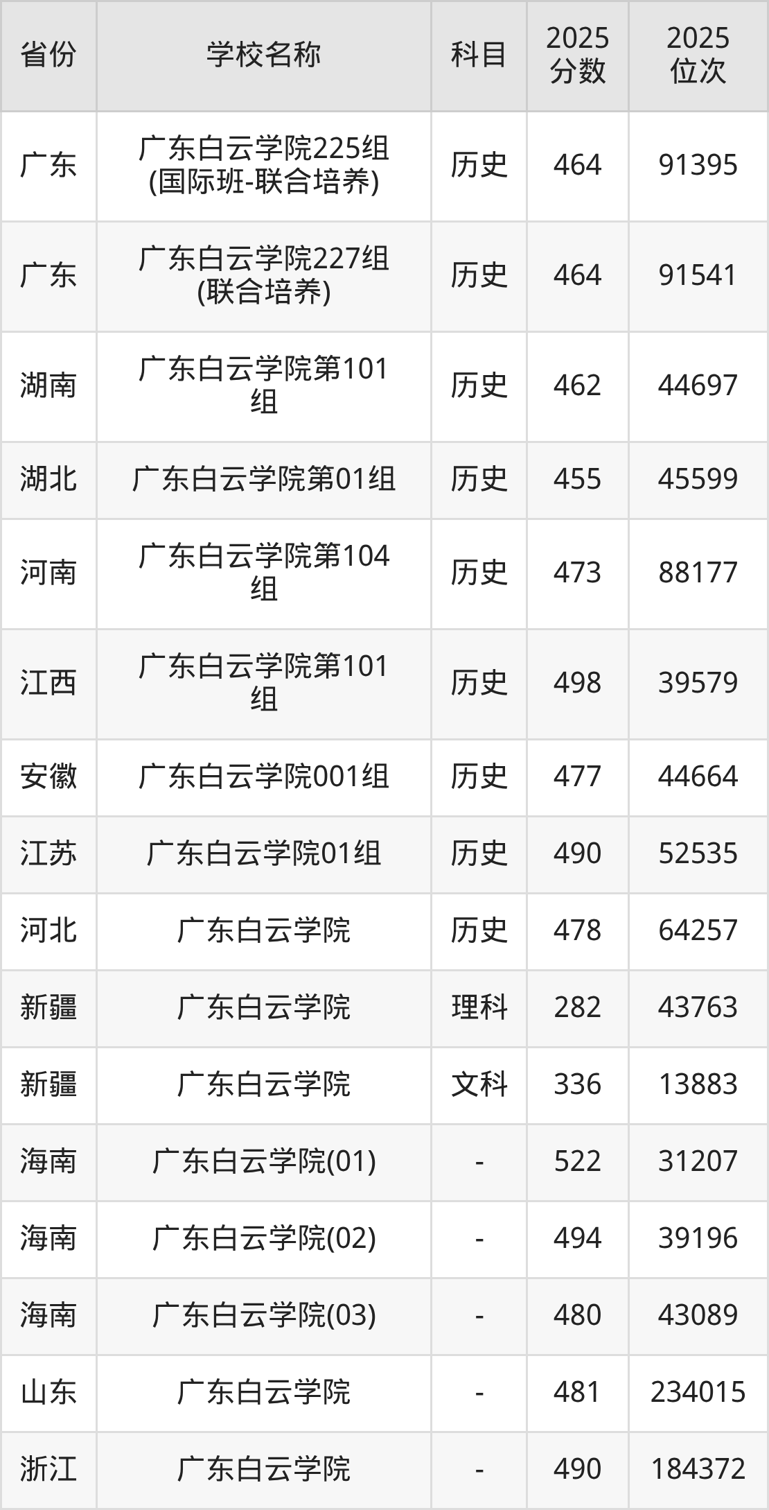 2025年广东白云学院在全国各省本科的最低录取分数线在282~522分之间。海南高考生最低522分能上广东白云学院、浙江高考生最低490分能上广东白云学院……下文将展示广东白云学院在全国16个高考省份中的本科最低投档录取分汇总!