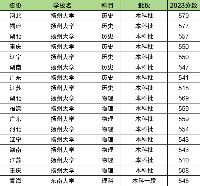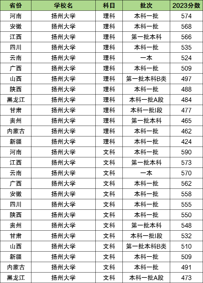 下面让我们来看看扬州大学2023年在各省的最低录取分数线,可供2024年考生参考。