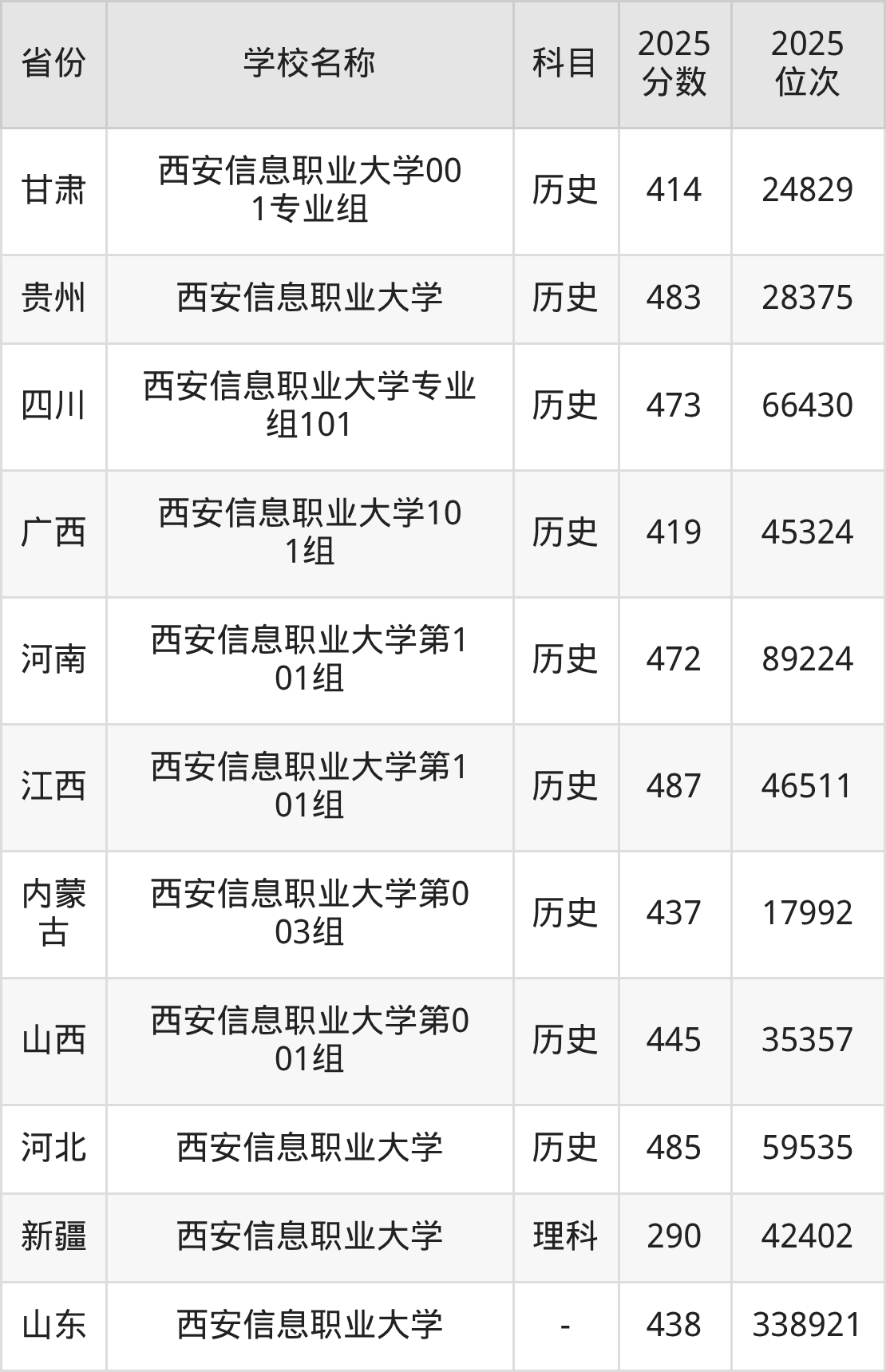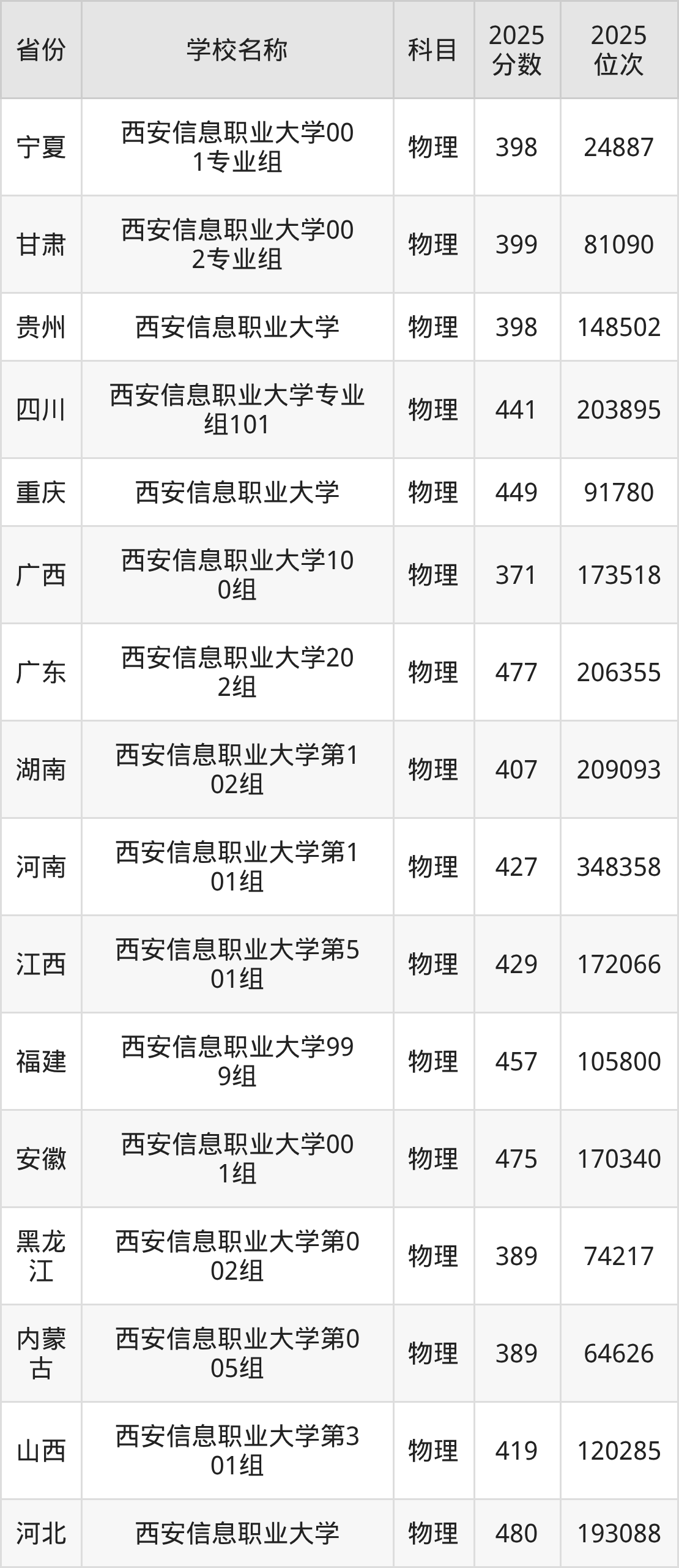 2025年西安信息职业大学在全国各省本科的最低录取分数线在290~487分之间。河北物理类高考生最低480分能上西安信息职业大学、广东物理类高考生最低477分能上西安信息职业大学……下文将展示西安信息职业大学在全国18个高考省份中的本科最低投档录取分汇总!