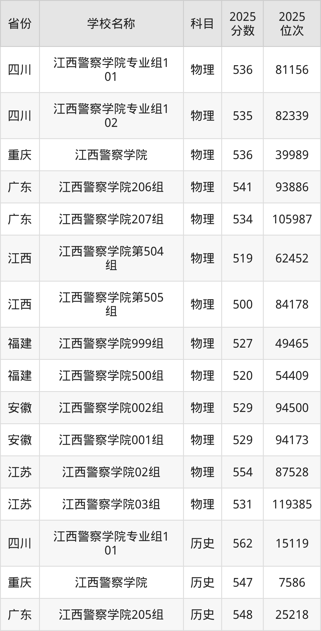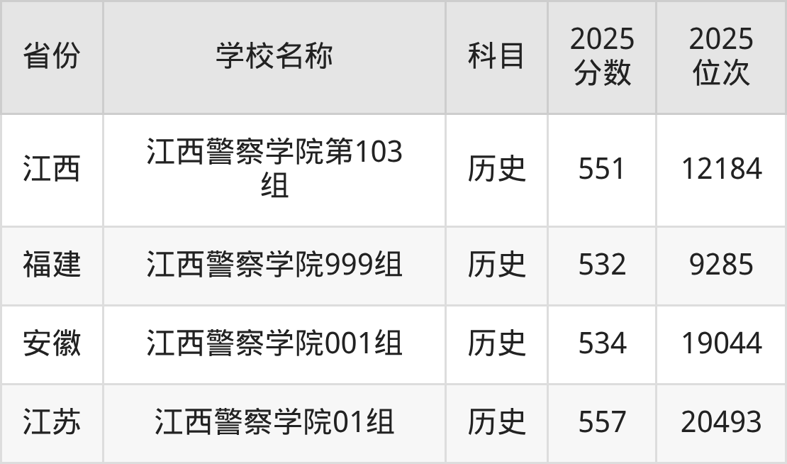 江西警察学院2025年有24个专业组面向江西省内首选了历史科目的考生招生: