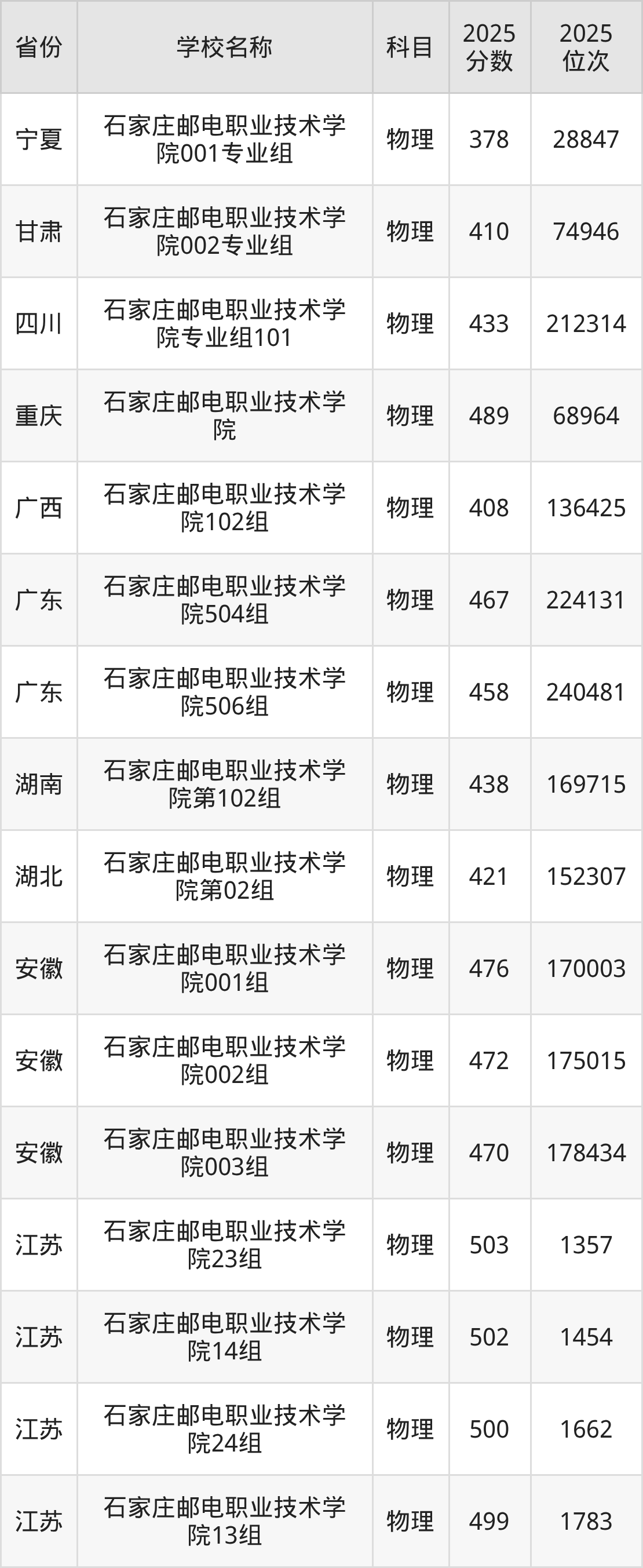 石家庄邮电职业技术学院2025年面向河北省内首选了物理科目的考生招生: