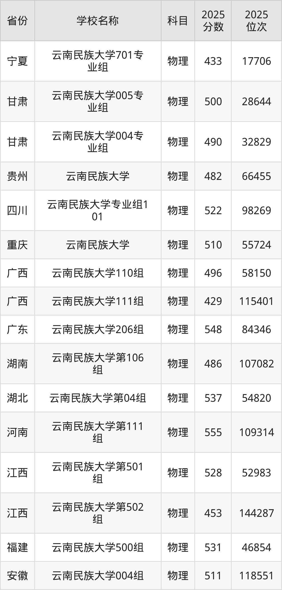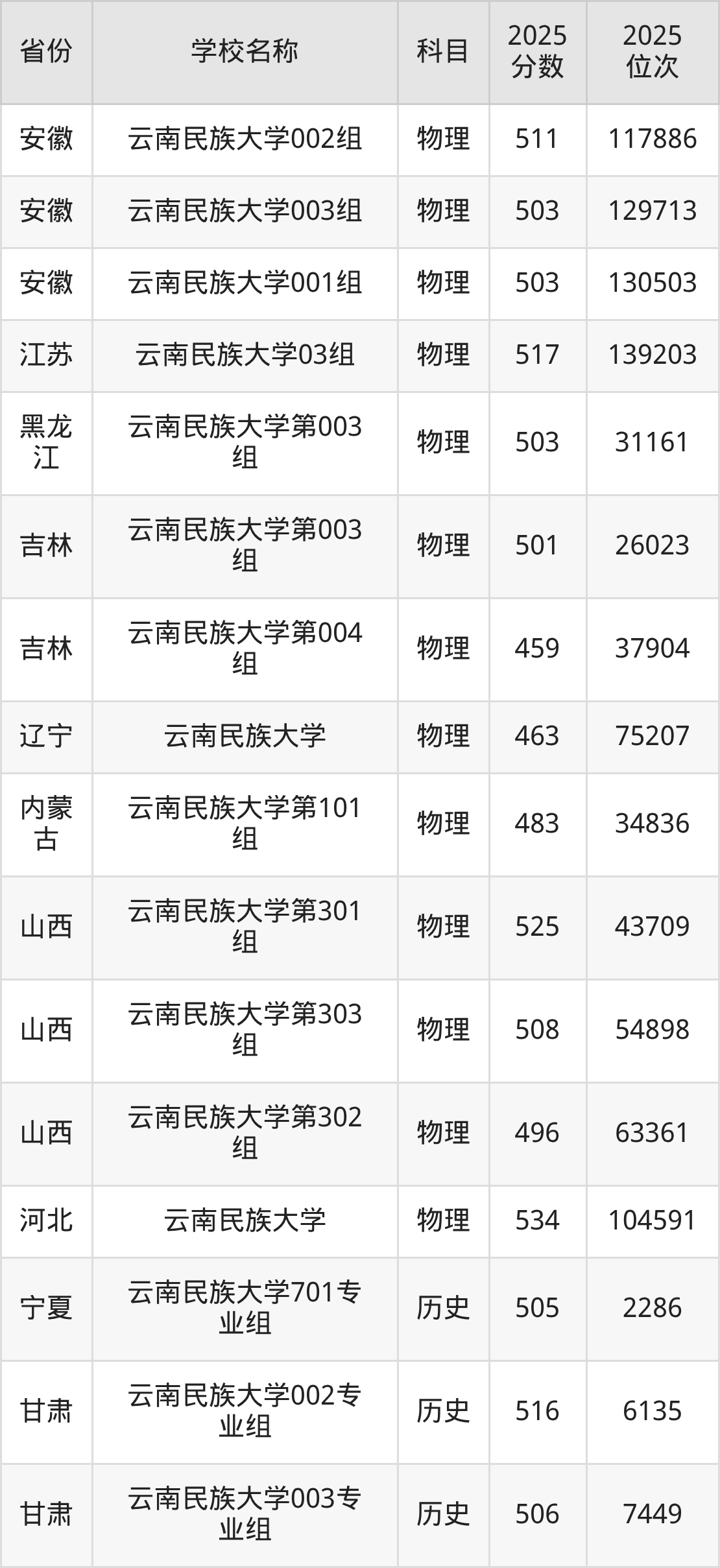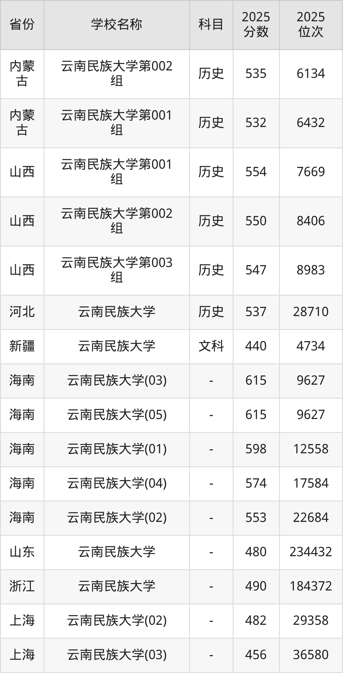 2025年云南民族大学在全国各省本科的最低录取分数线在429~615分之间。海南高考生最低615分能上云南民族大学、天津高考生最低556分能上云南民族大学……下文将展示云南民族大学在全国26个高考省份中的本科最低投档录取分汇总!