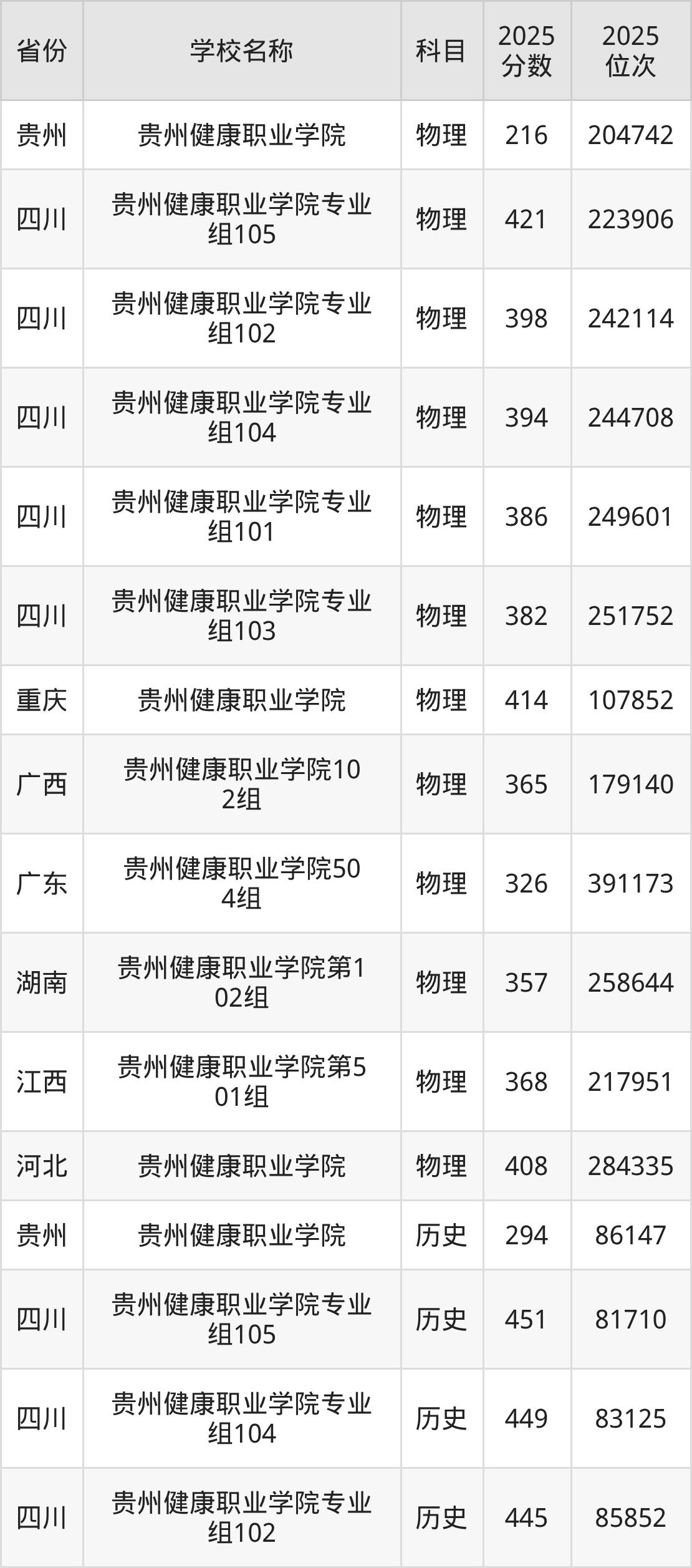 贵州健康职业学院2025年面向贵州省内首选了物理科目的考生招生: