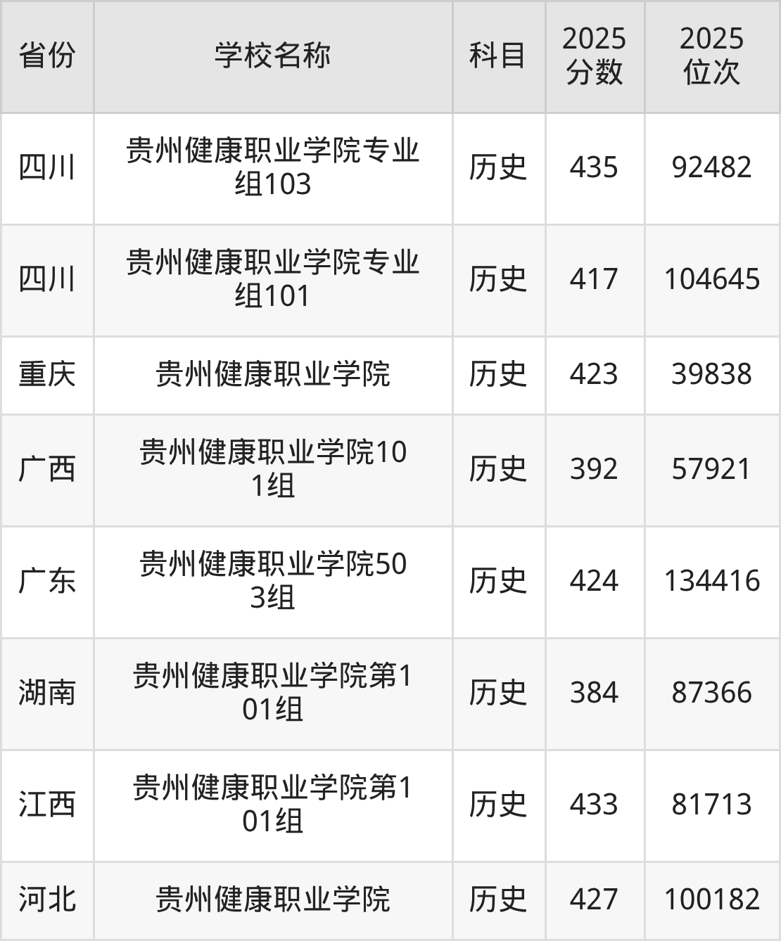 贵州健康职业学院2025年面向贵州省内首选了历史科目的考生招生: