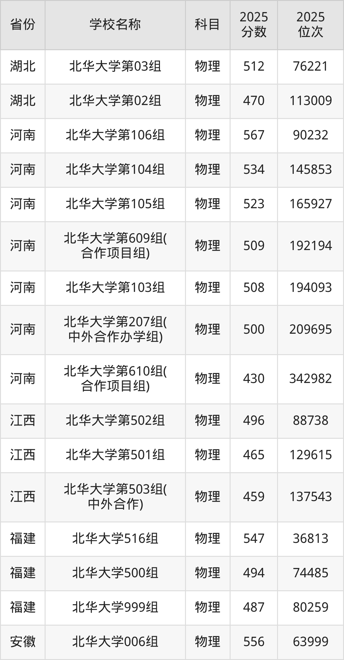 可见,北华大学的不同专业组,在“招生专业、录取分数线”等方面有较大区别。物理类专业组之间的分数线差距高达204分、历史类专业组之间的分数线差距高达67分。