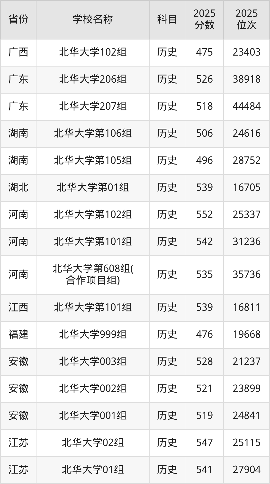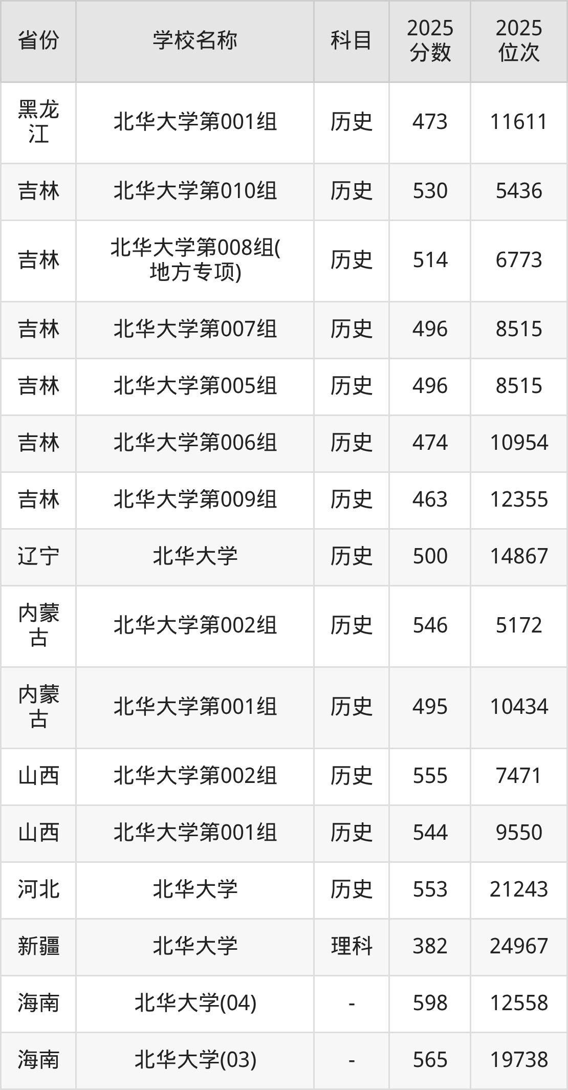 北华大学2025年有7个专业组面向吉林省内首选了历史科目的考生招生: