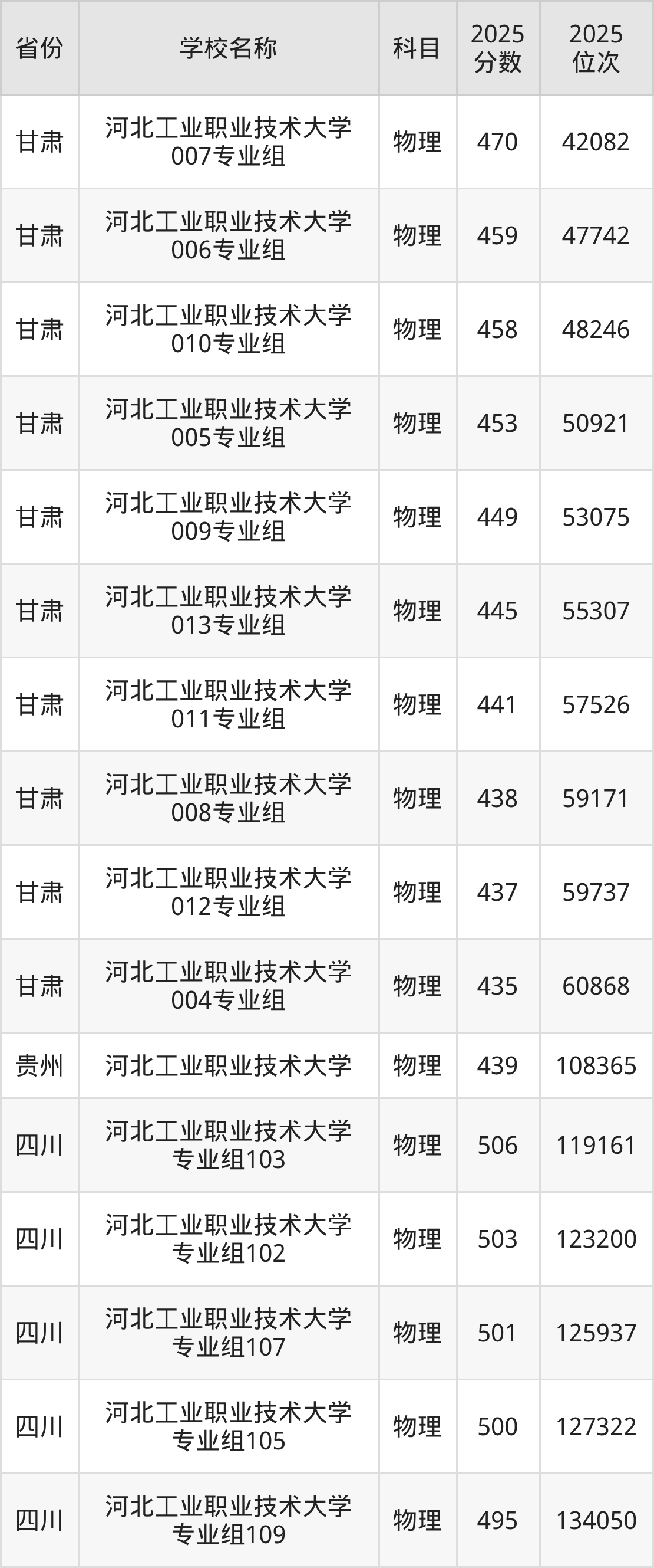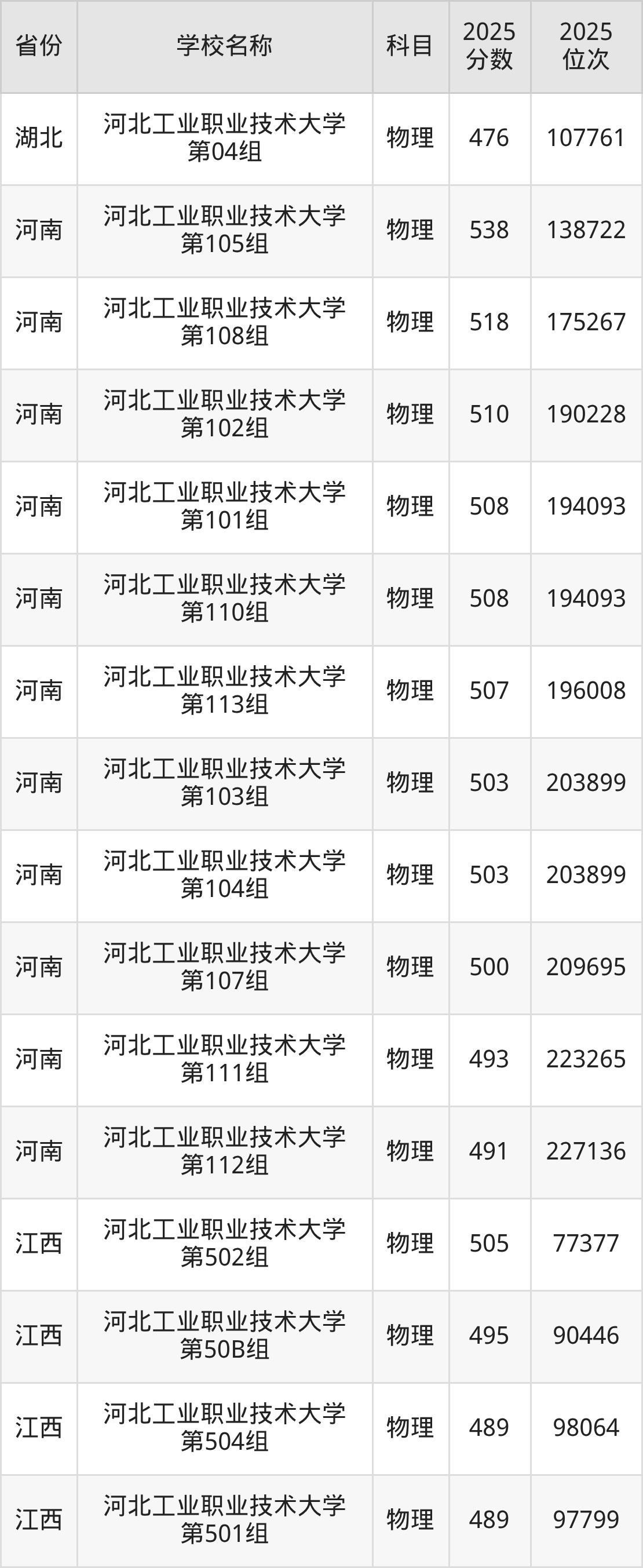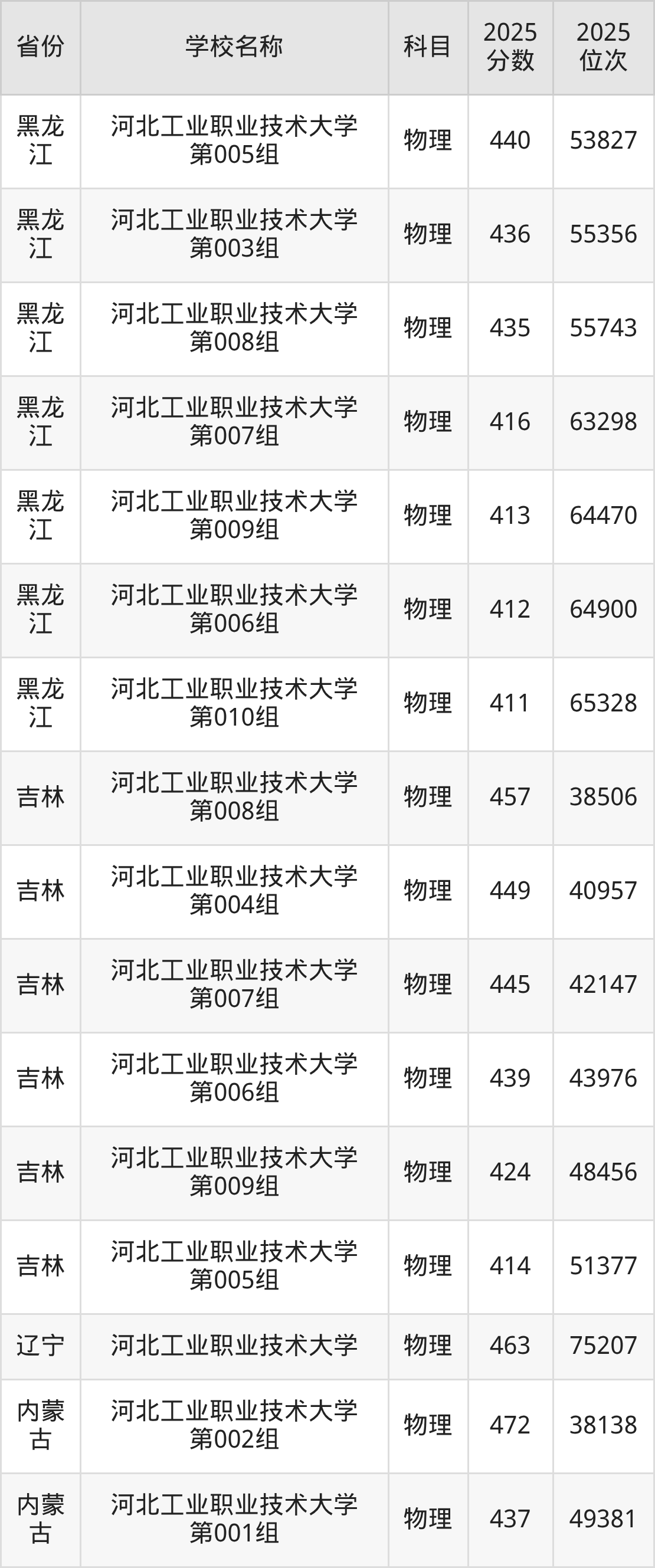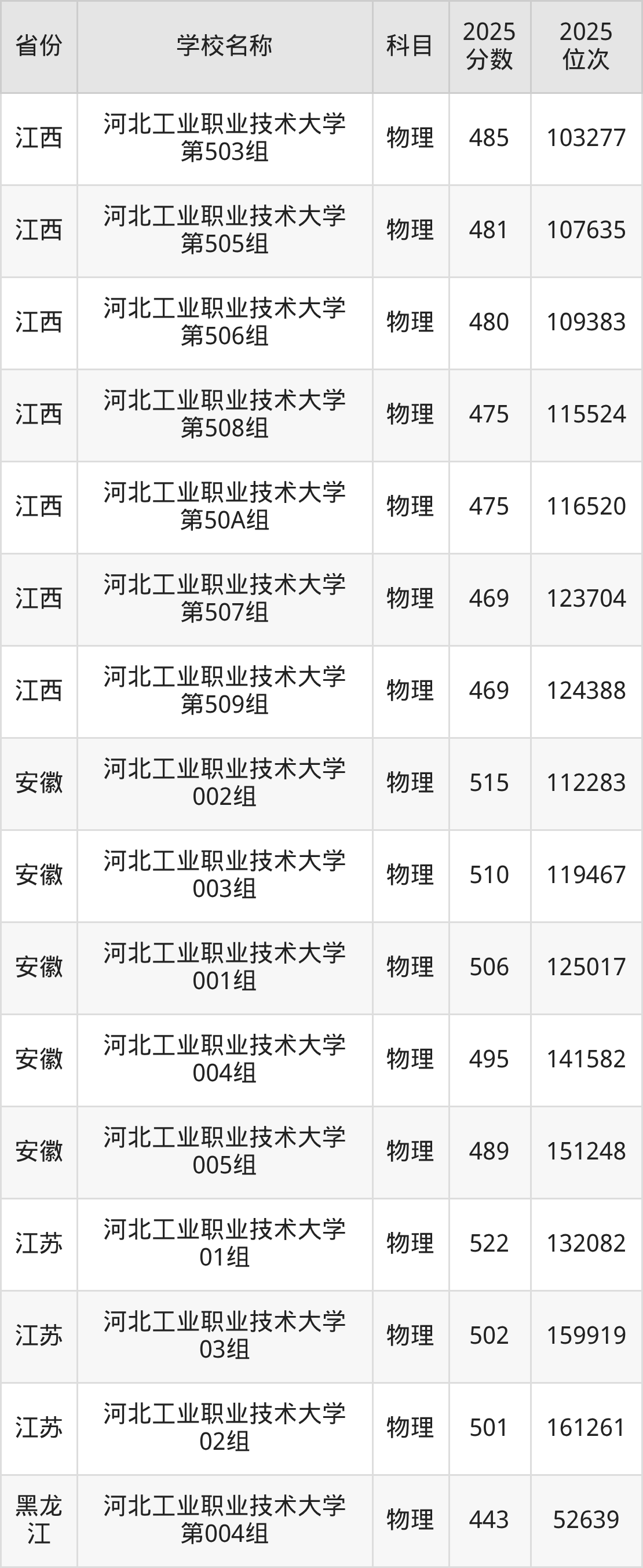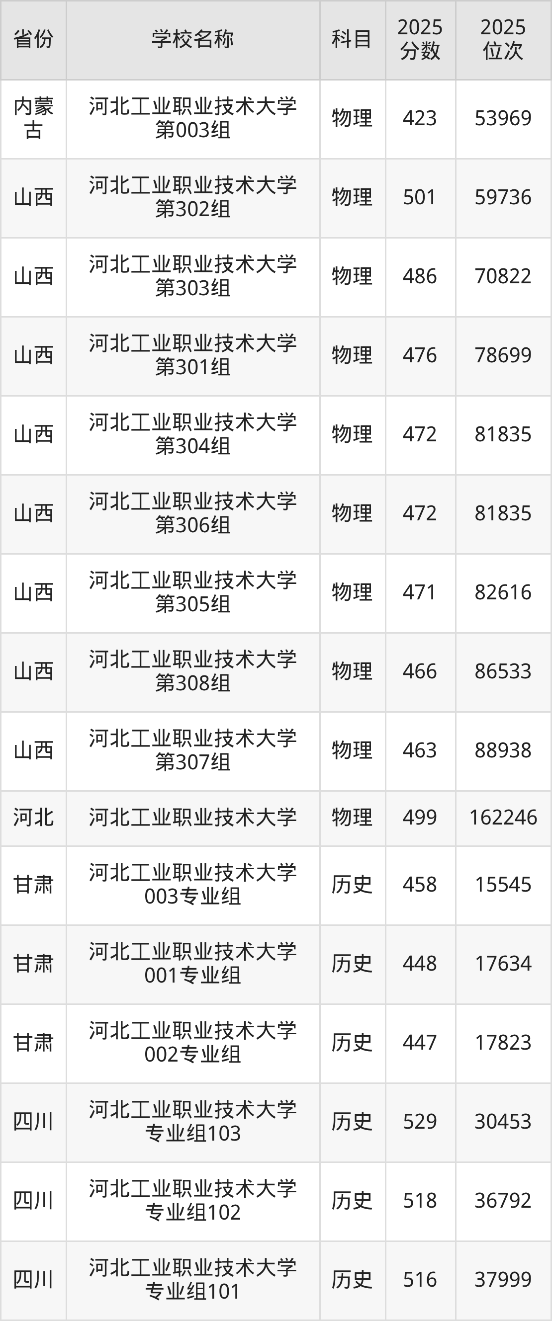 二、河北工业职业技术大学各专业录取分数线