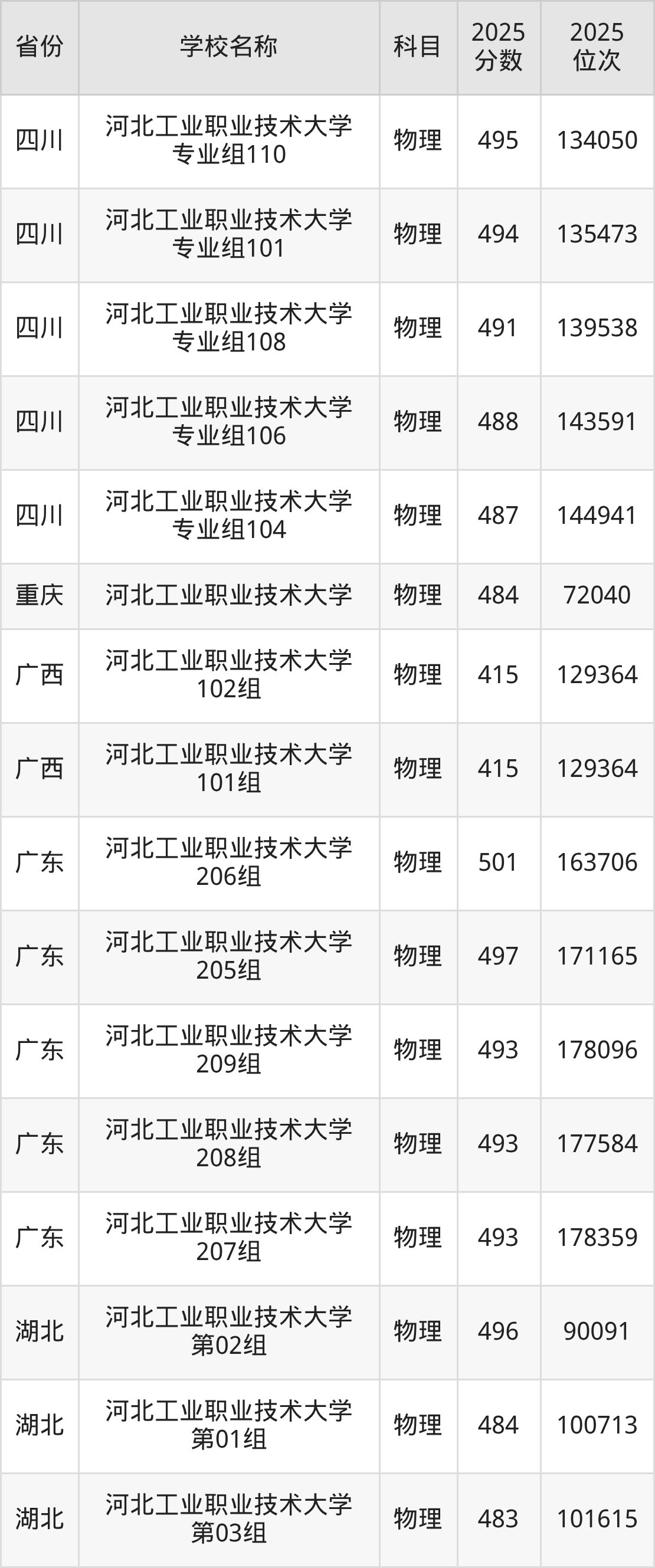 13、工业机器人技术专业:2025年最低466分、最低位次是72311