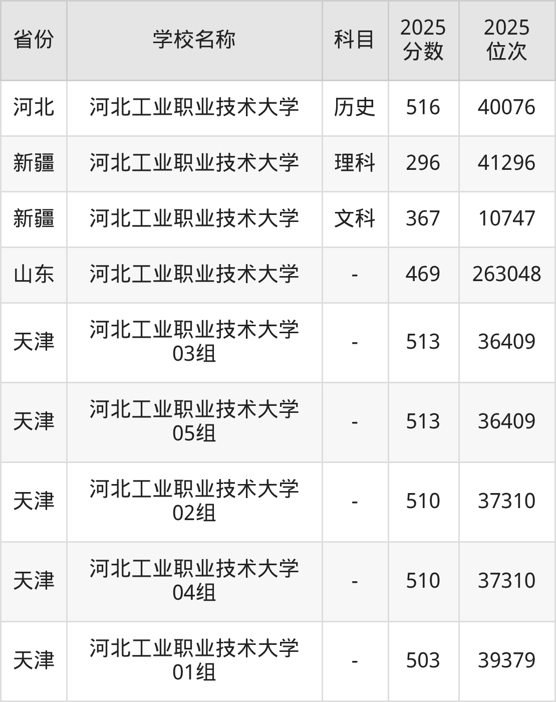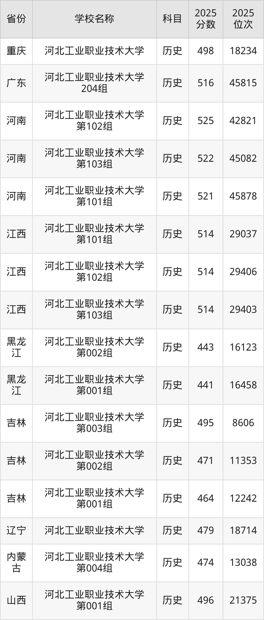 一、2025河北工业职业技术大学录取分数线
