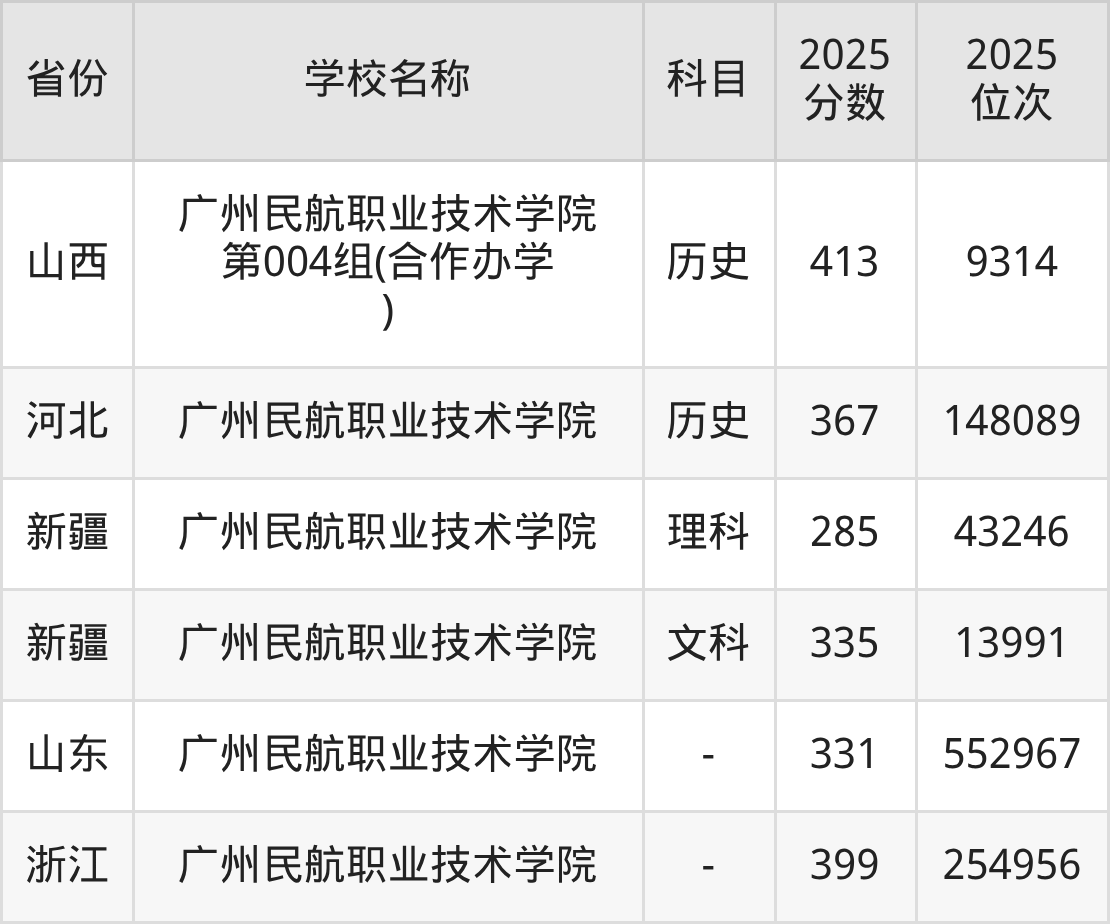 再看广东高考2025年专科批次线,历史类是215分、物理类是200分。通过对比发现:广州民航职业技术学院2025年历史类最低分比专科线高236分,物理类最低分比专科线高224分。2026届广东高考生,可通过每一次模考划线,来判断自己的成绩是否有机会被广州民航职业技术学院录取。