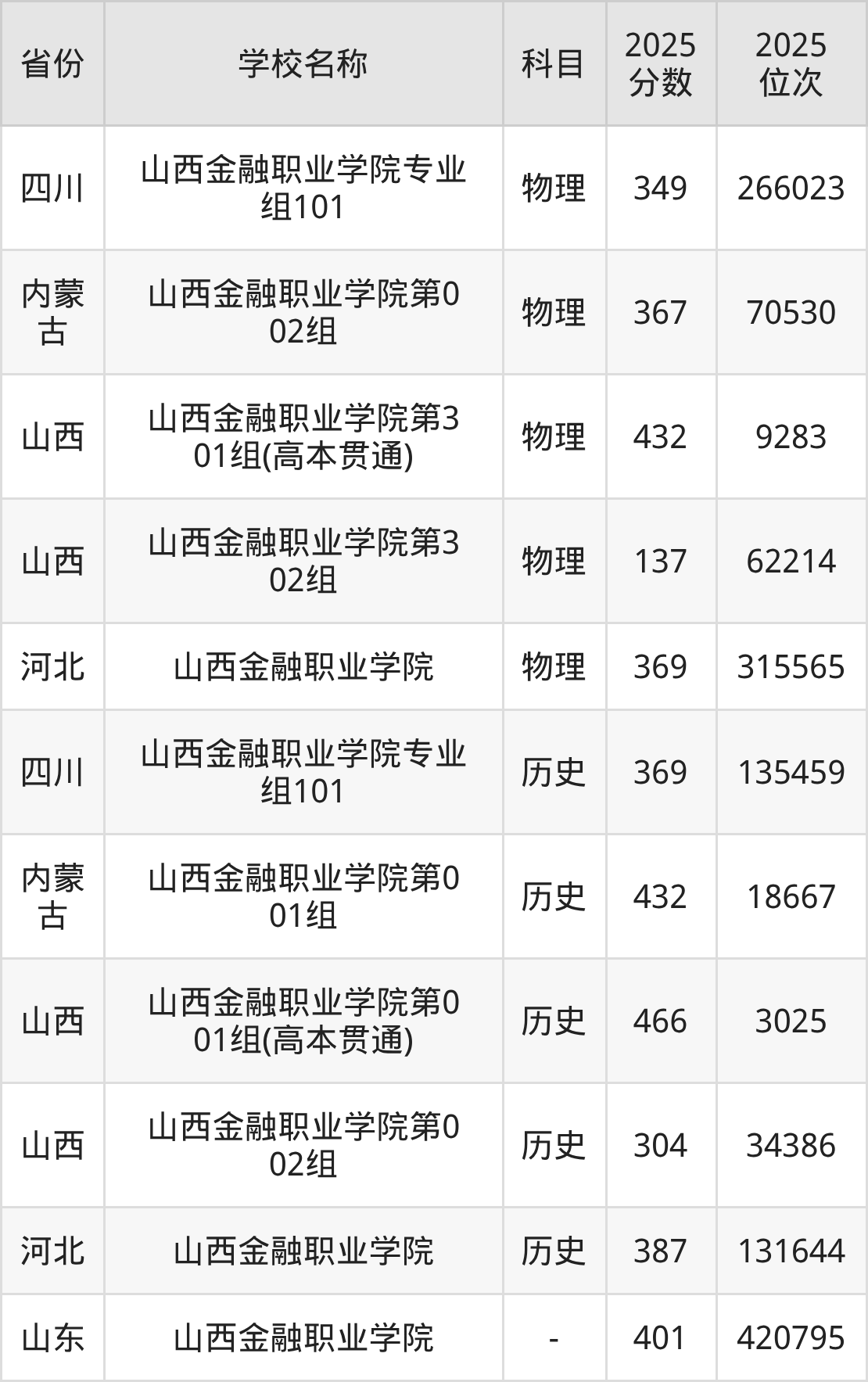 2025年山西金融职业学院在全国各省专科的最低录取分数线在137~466分之间。山西物理类高考生最低432分能上山西金融职业学院、山东高考生最低401分能上山西金融职业学院……下文将展示山西金融职业学院在全国5个高考省份中的专科最低投档录取分汇总!